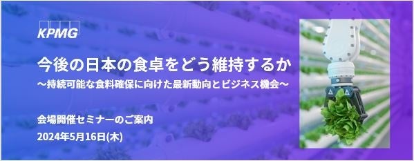 【2024年5月16日(木) 会場開催セミナー】今後の日本の食卓をどう維持するか~持続可能な食料確保に向けた最新動向とビジネス機会~ KPMG FAS 梶川 慎也、和田 美野が講演します。