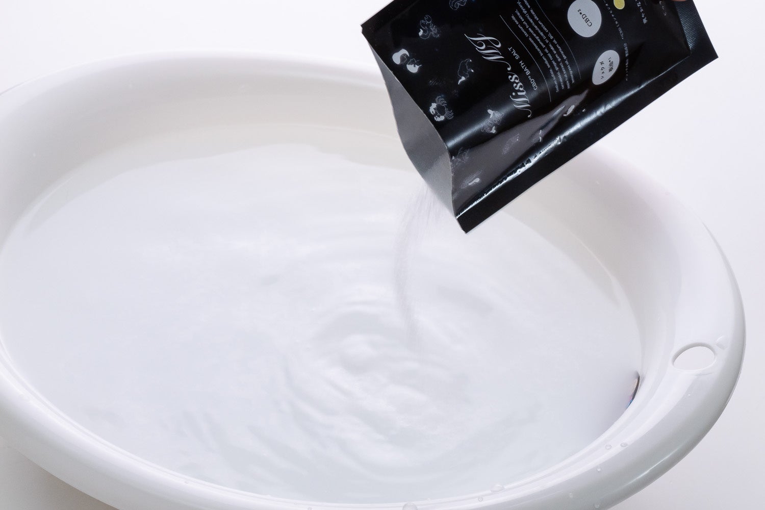 CBD 入りのバスソルトは1日の疲れを優しくリセット。