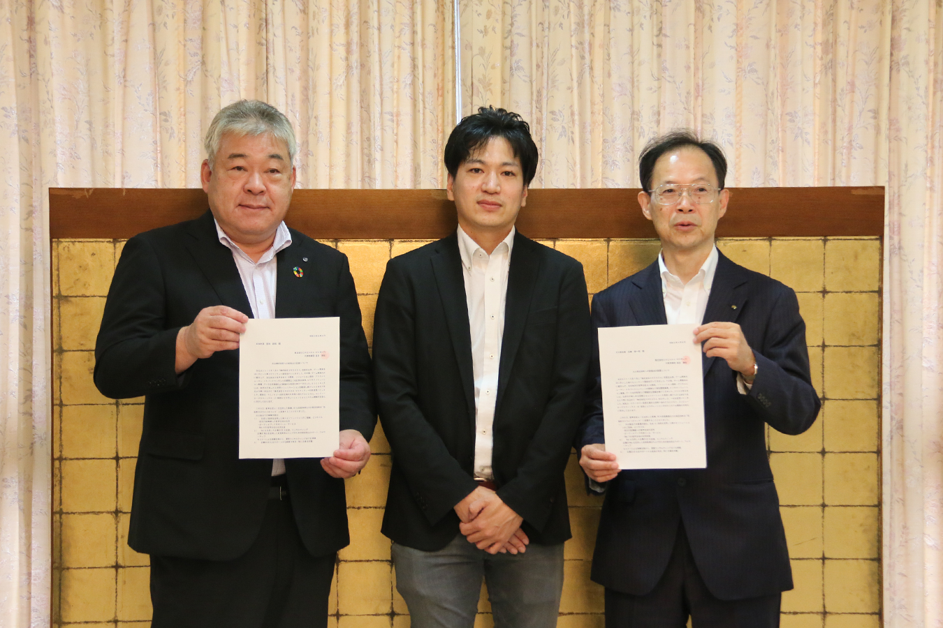写真左から、玖珠町町長 宿利政和様、ORENDA WORLD 代表取締役 澁谷陽史、大分県知事 佐藤樹一郎様