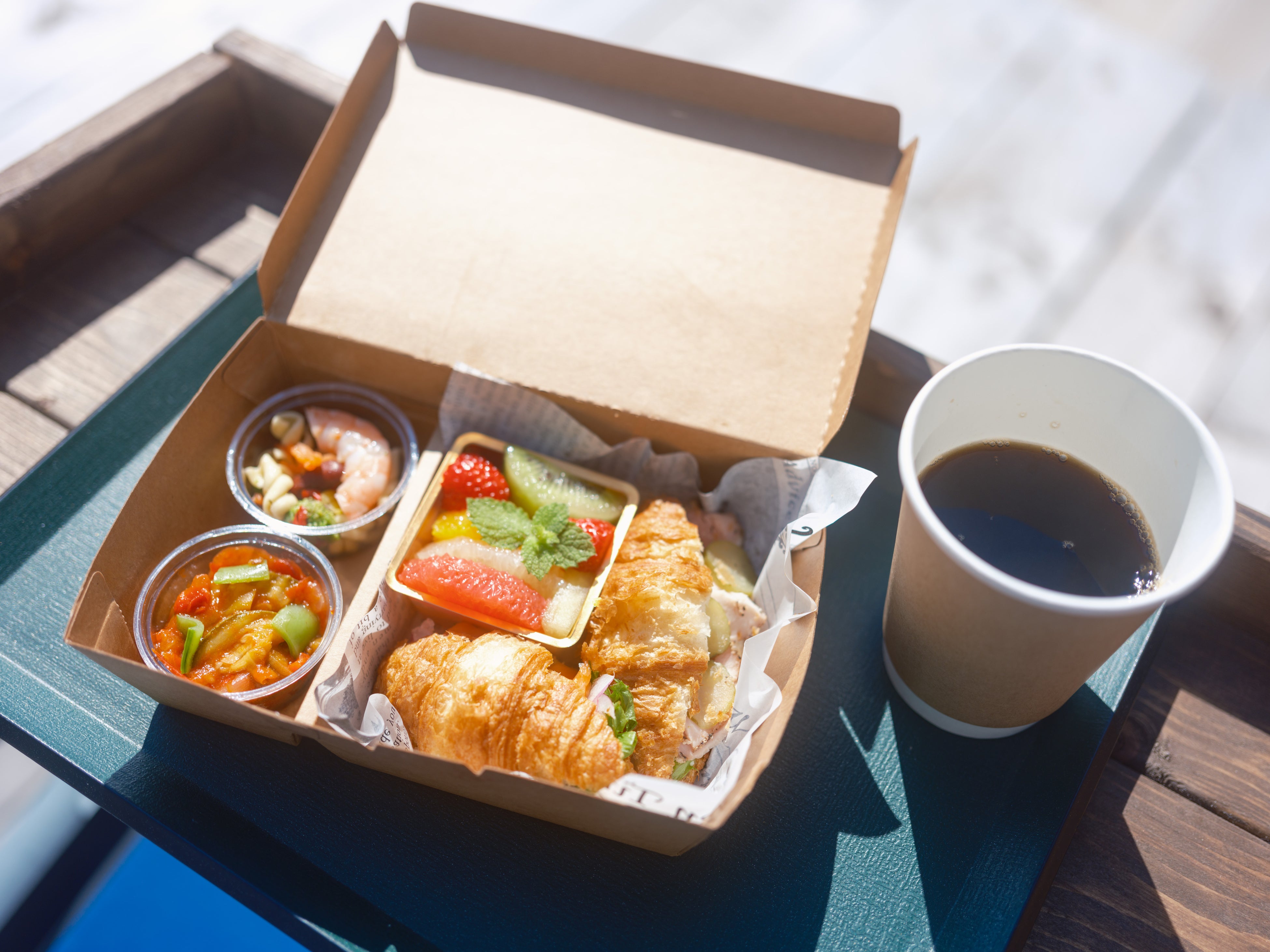 このような最高の眺望を楽しみながら、よりゆったりとプライベートな時間をお楽しみいただけるよう、オリジナル朝食BOXをご用意いたします。ドリンクと一緒に、優雅に朝食をとりながら空中散歩をお楽しみください。