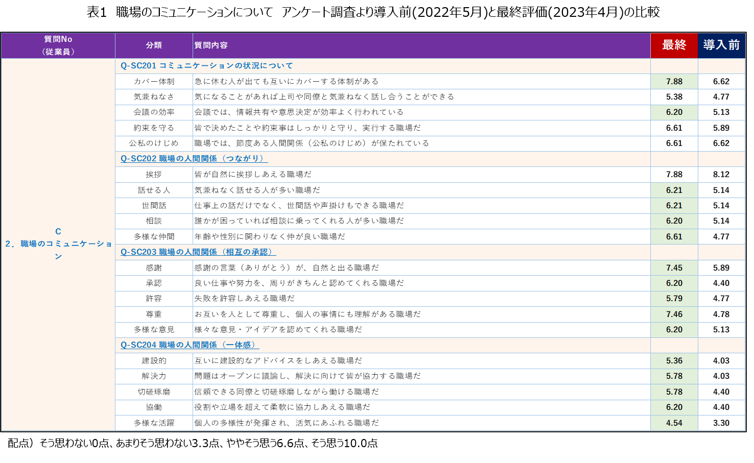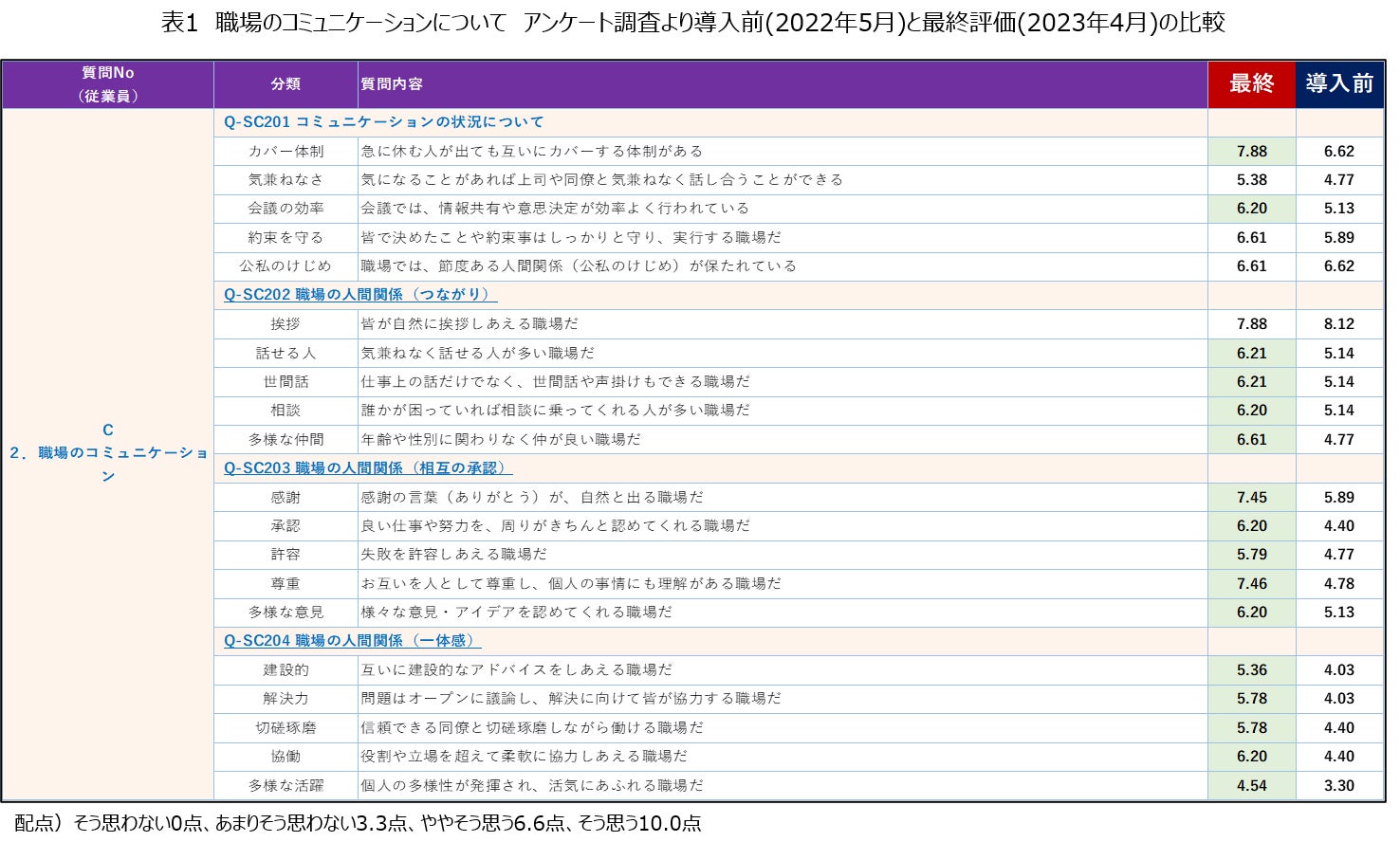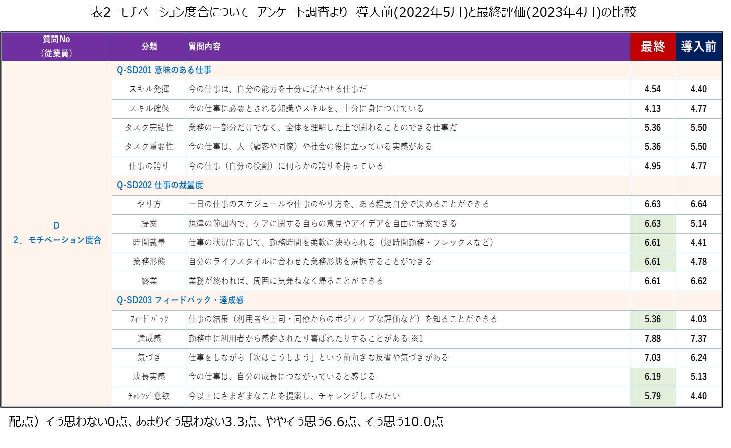 表2にあるように、職員のモチベーションは向上しているが、意味のある仕事(Q-SD201)については変化を認め