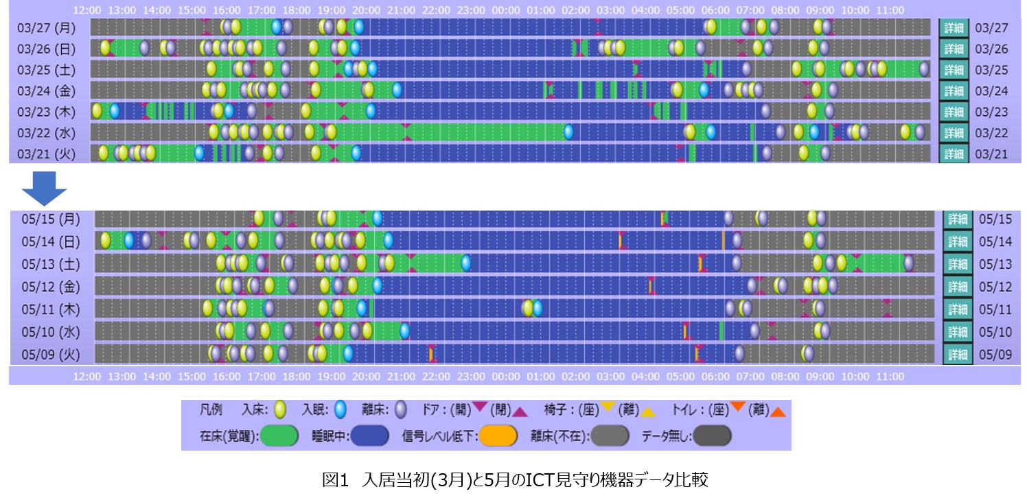 表1にあるように職員同士のコミュニケーションの改善を認めた。ICT見守り機器から得られるデータをもと