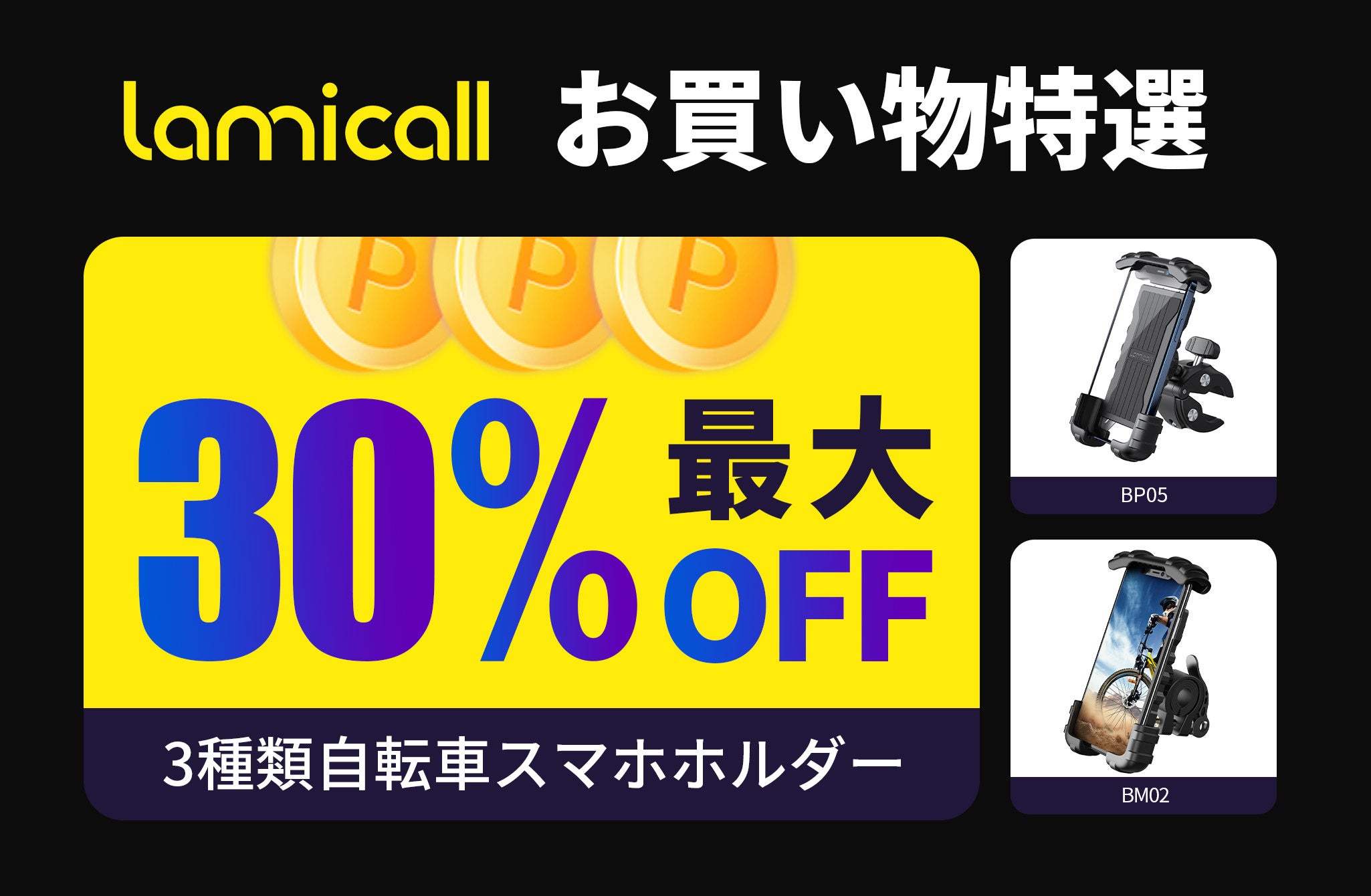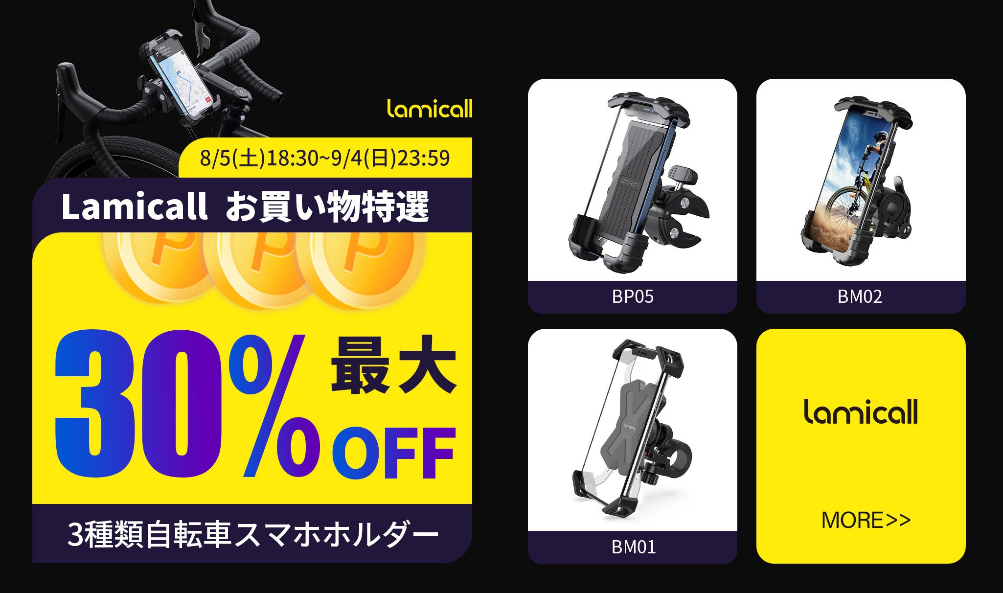 2022年8月5日(土)18:30から9月4日(日)23:59に、Lamicall店内3種類の自転車スマホホルダーを最大30%オフのお買い価格でご購入いただけます。お得なチャンスをお見逃しなく!