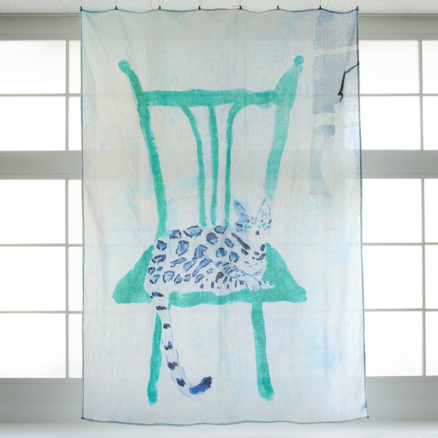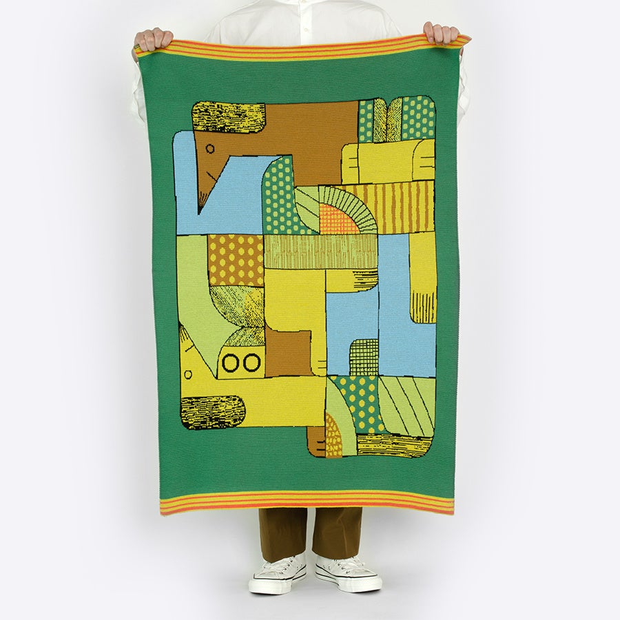 日本製のニットブランケット。ジャガード編みでアーティスト作品を表現しています。
