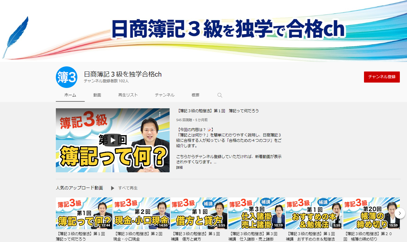 YouTubeチャンネル公開!簿記を学びたい方必見!【日商簿記3級を独学で合格ch】