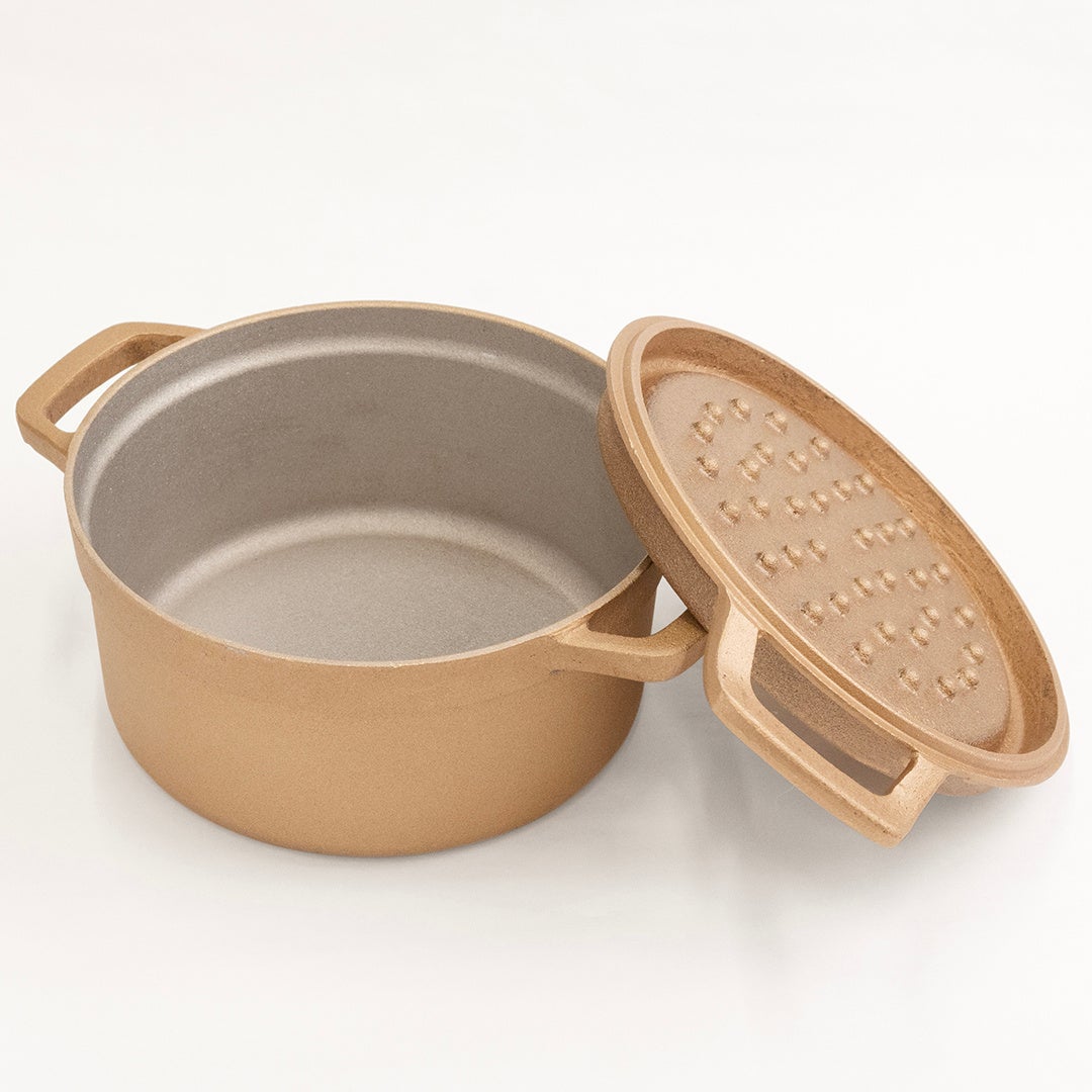 銅の熱伝導の良さと、鋳物の特性である蓄熱性の高さを併せ持つことで食材の旨味を引き出します。
