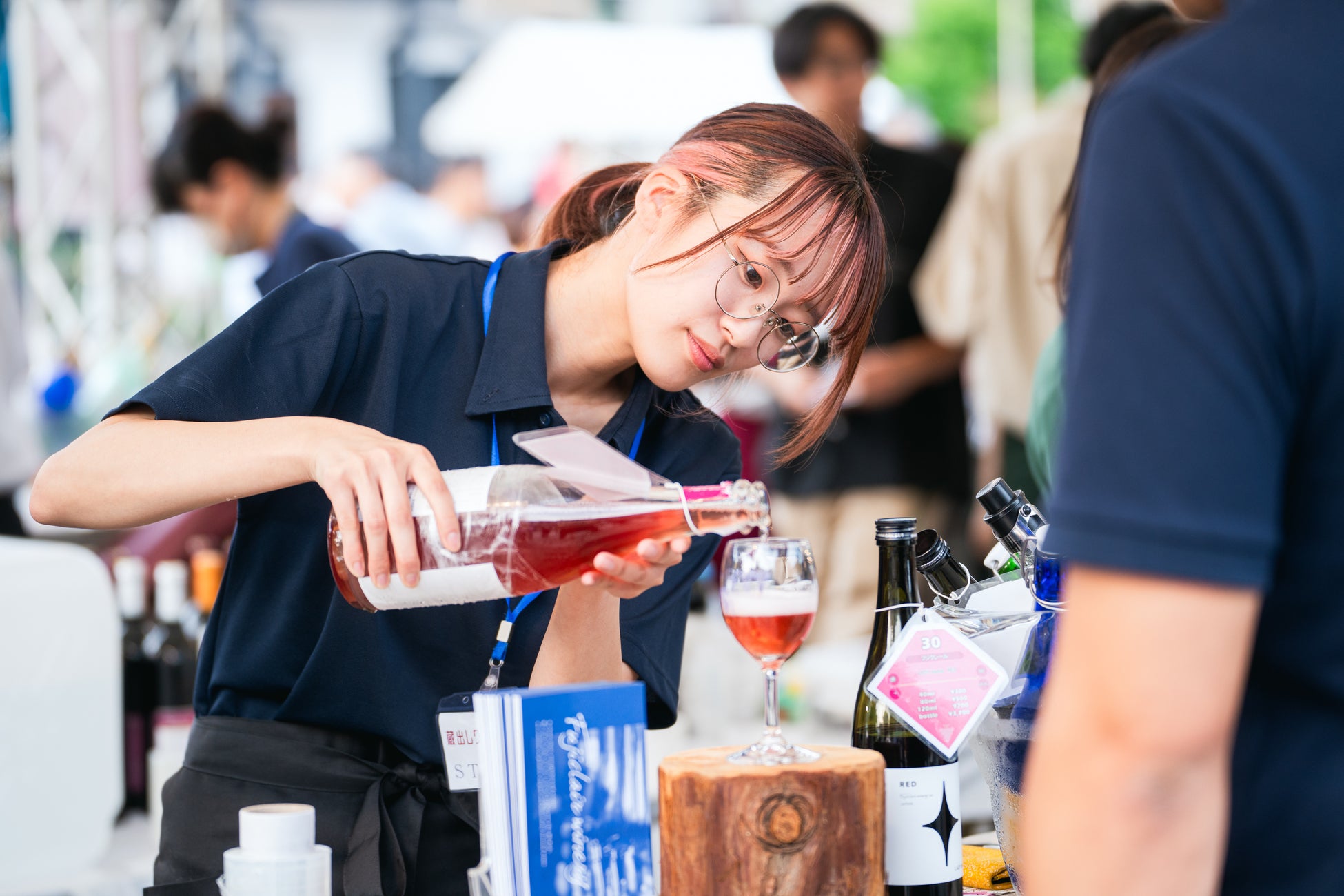 会場ではソムリエや造り手、また造り手の卵たちが皆様にサービスします。お好みのブースでグ