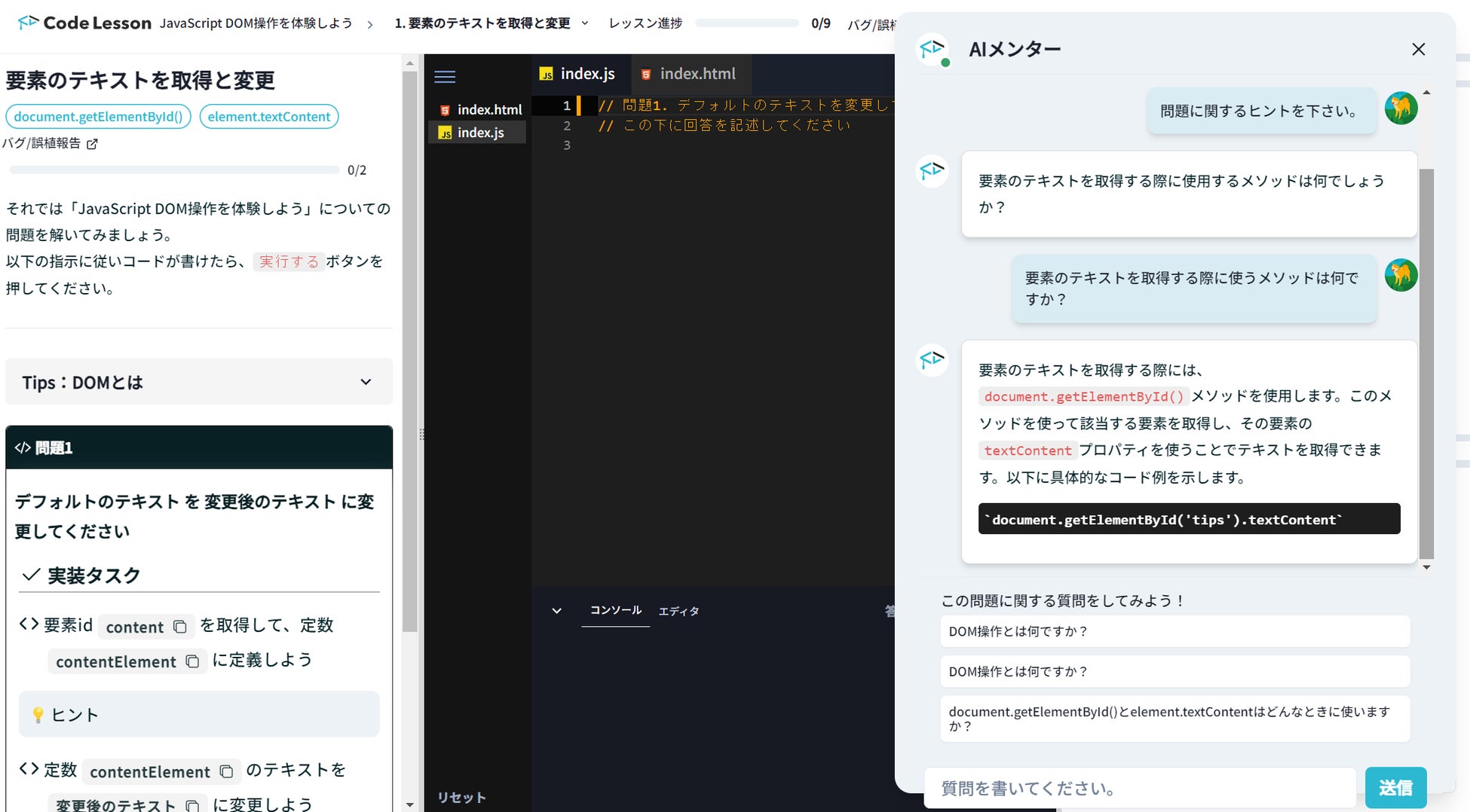 AIにいつでも質問可能で、学習中の疑問や不明点をすぐに解消することができます。