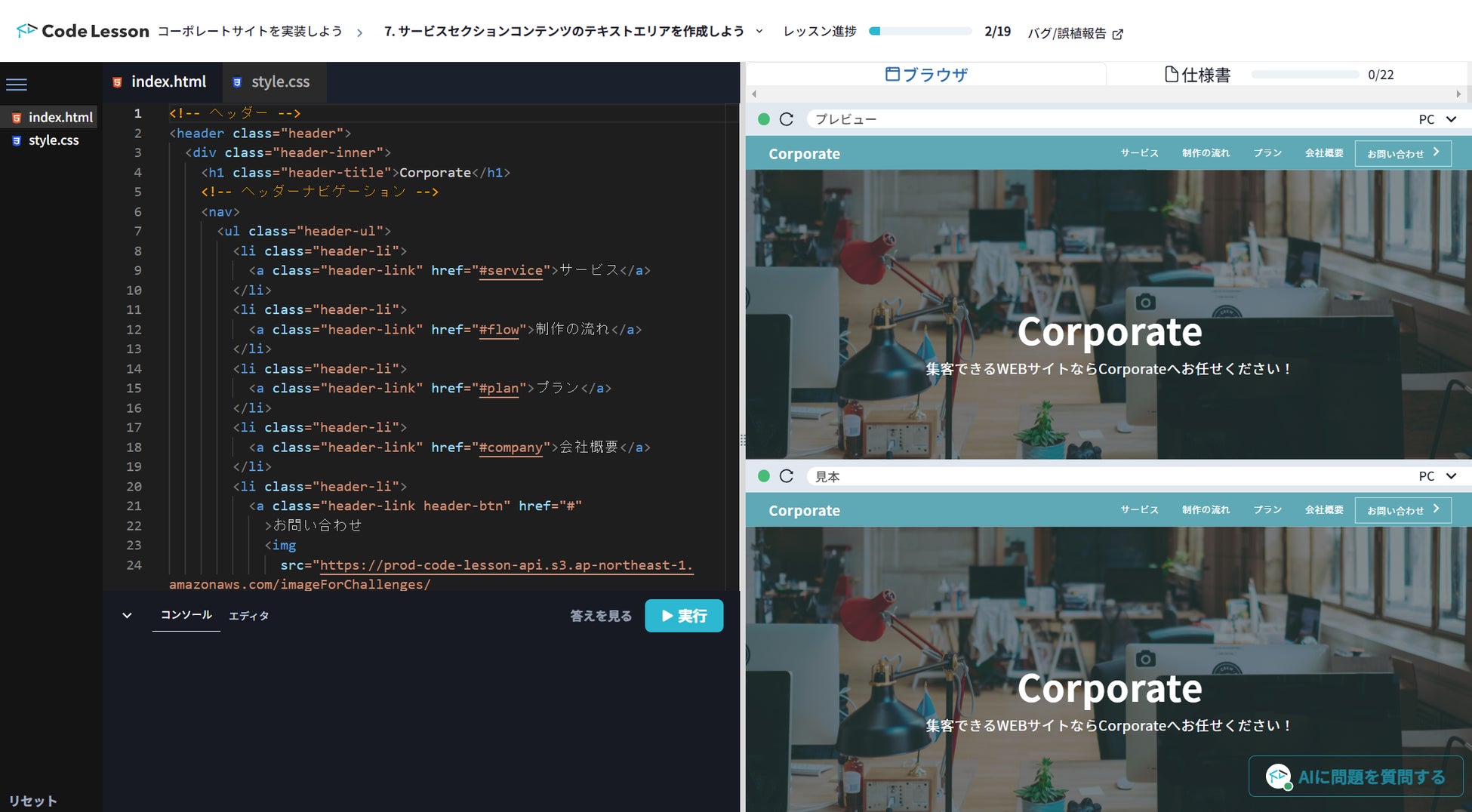 Code Lesson for Businessは、新人のIT人材育成において多くの企業が直面する「社内の教育リソース不足」や「OJT期間の長期化」などの課題を解決するために、オンライン上での実践的なプログラミング学習環境を提供します。