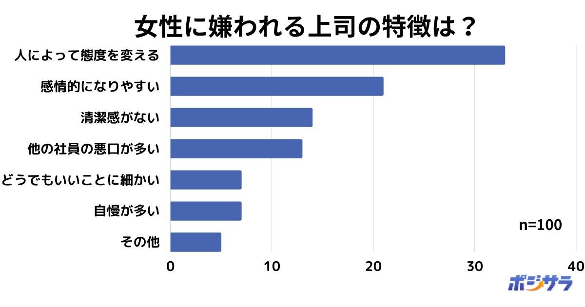 アンケートの結果、女性に嫌われる上司の特徴でもっとも票数が多かったのが「人によって態度を変える」でした。