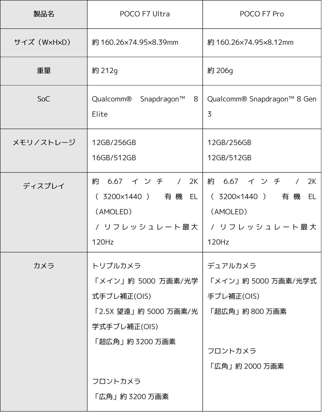 小米技術日本株式会社(以下「シャオミ・ジャパン」、本社:東京都港区、取締役社長:大沼 彰)は、POCOのフラッグシップクラスのFシリーズから2モデルを本日3月27日(木)より発売します。「POCO F7 Ultra」は、POCOブランドで初めてUltraを冠したモデルで、市場想定価格は99,980円(税込)から、「POCO F7 Pro」は69,980円(税込)からになります。