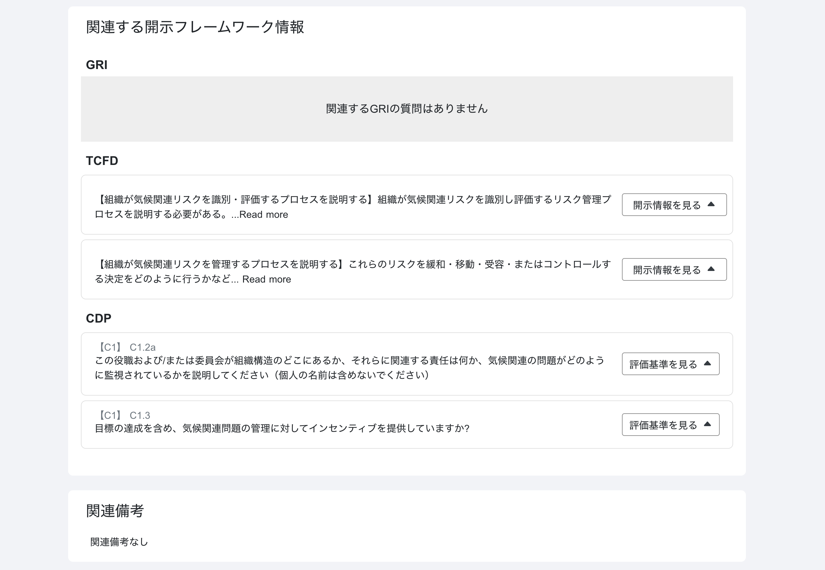 質問書の内容は外部評価機関によってさまざまですが、重複する質問事項も多く、業務効率化が望まれていました。estomaでは、ある質問を回答するに当たり、他の質問書で回答した関連情報やメモが自動で紐付けされます。