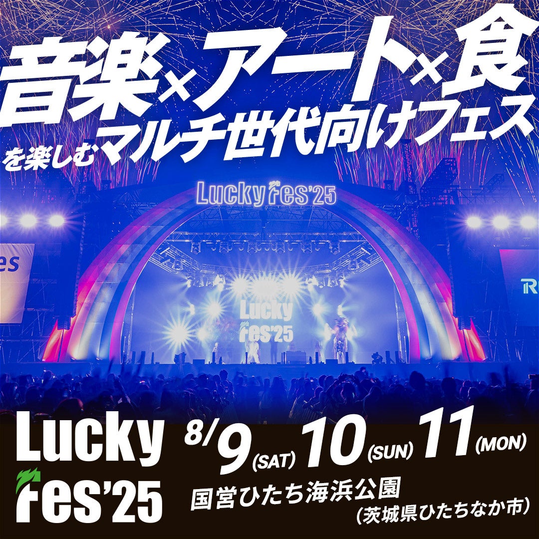 LuckyFes’25は、8月9日~11日に国営ひたち海浜公園で開催され、4ステージで108組のアーティストが出演、600発の花火とともに8万人超の来場者を迎え、大成功を収めました。