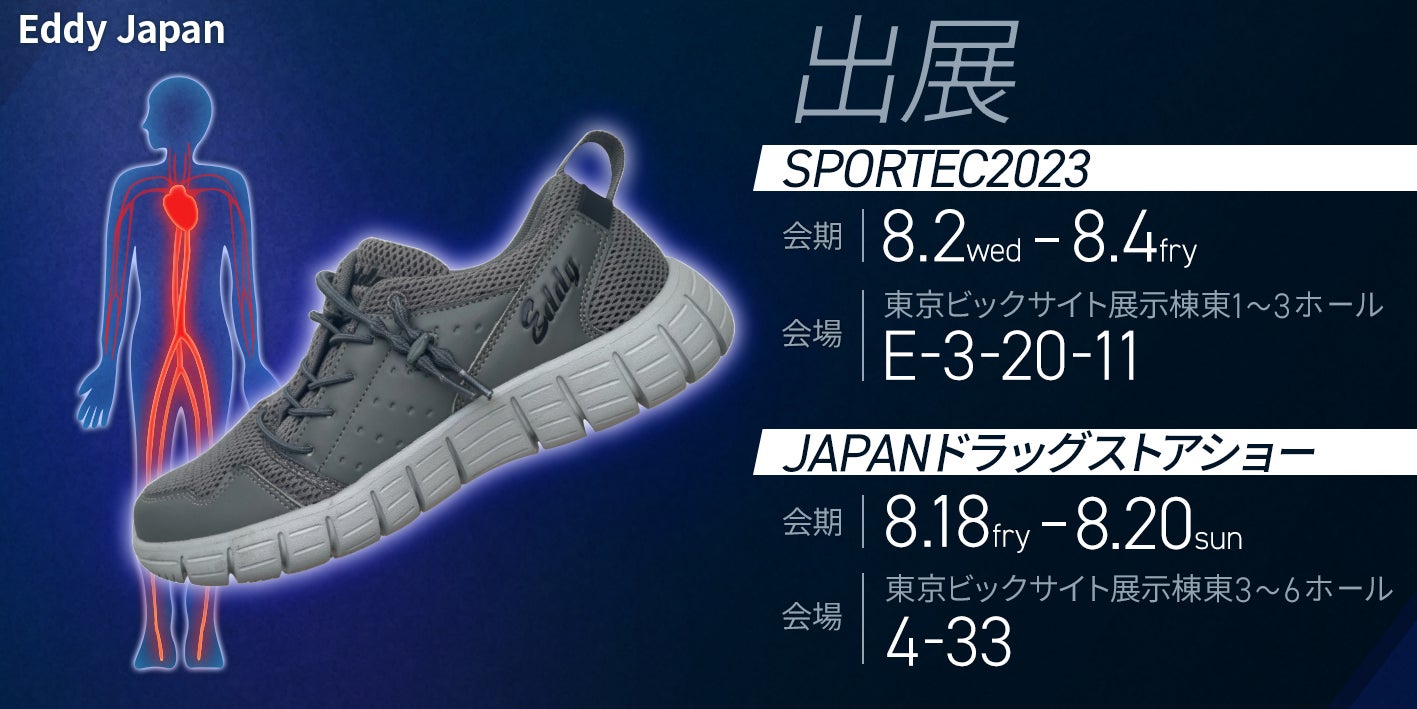 【新発想】健康を増進させる全く新しいヘルスケアシューズEddyを開発したEddyJapanが8月に行われる最大級の展示会「SPORTEC2023」と「JAPANドラッグストアショー」に出展