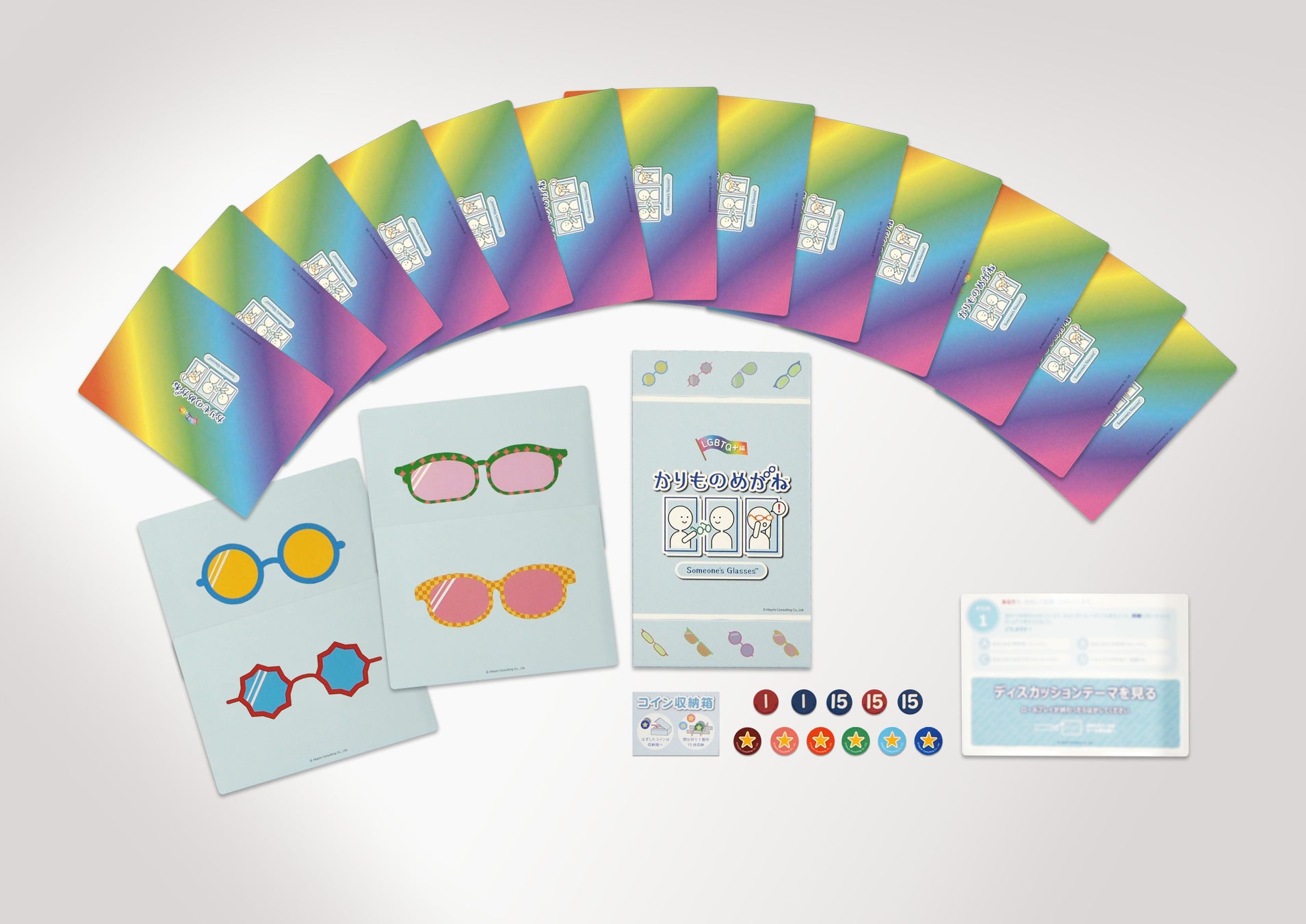 DEIゲーム「かりものめがね®」は、多様な属性を持つ当事者が実際に直面しているリアルなトラブルを疑似体験し、参加者同士でディスカッションすることで、参加者に意識・行動面での気付きを促すことができるカードゲーム形式の教育コンテンツです。
