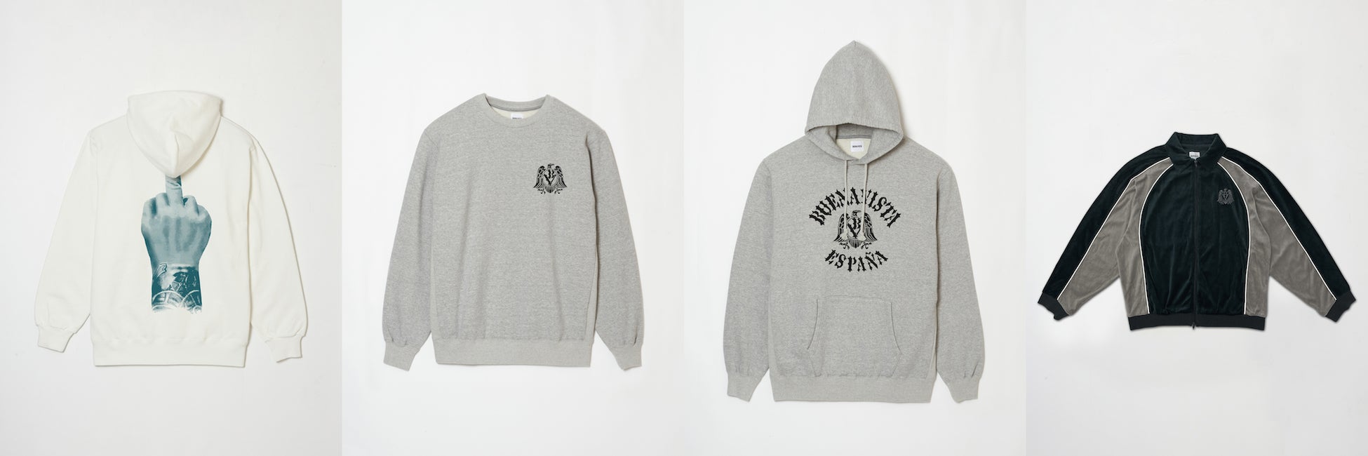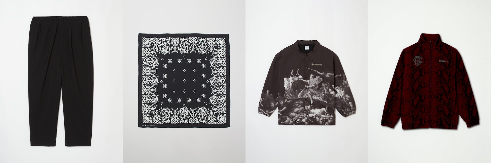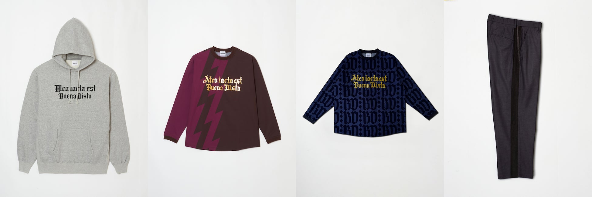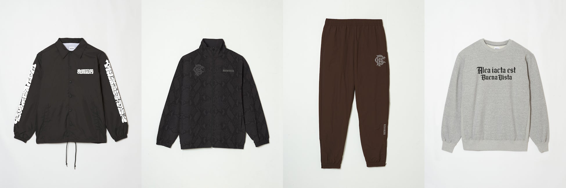 クリエイティブ・ディレクターの石塚が注目しているトレンドやグラフィックに、遊び心を加えてデザインしたアイテムをラインナップ。『AEE COACH JK (賽は投げられた) 』 をテーマにした新シリーズは、まさに新生BUENA VISTAが始動し始めた今の状況が表現されたアイテムです。他にも、有名な絵画やサッカーをモチーフにBUENA VISTAらしくアレンジが施されたアイテム、前シーズンで人気を博した『ぶっちぎりBV CAP』の新色、『QUE MIRAS BOBO』のスウェット・フーディなど、全28型のアイテムが登場します。
