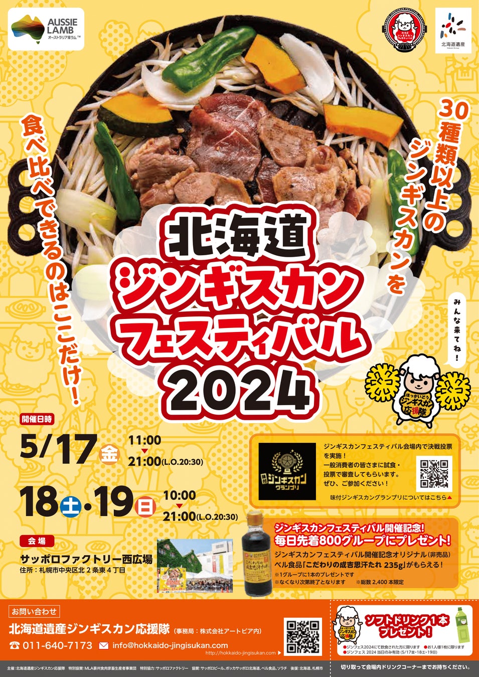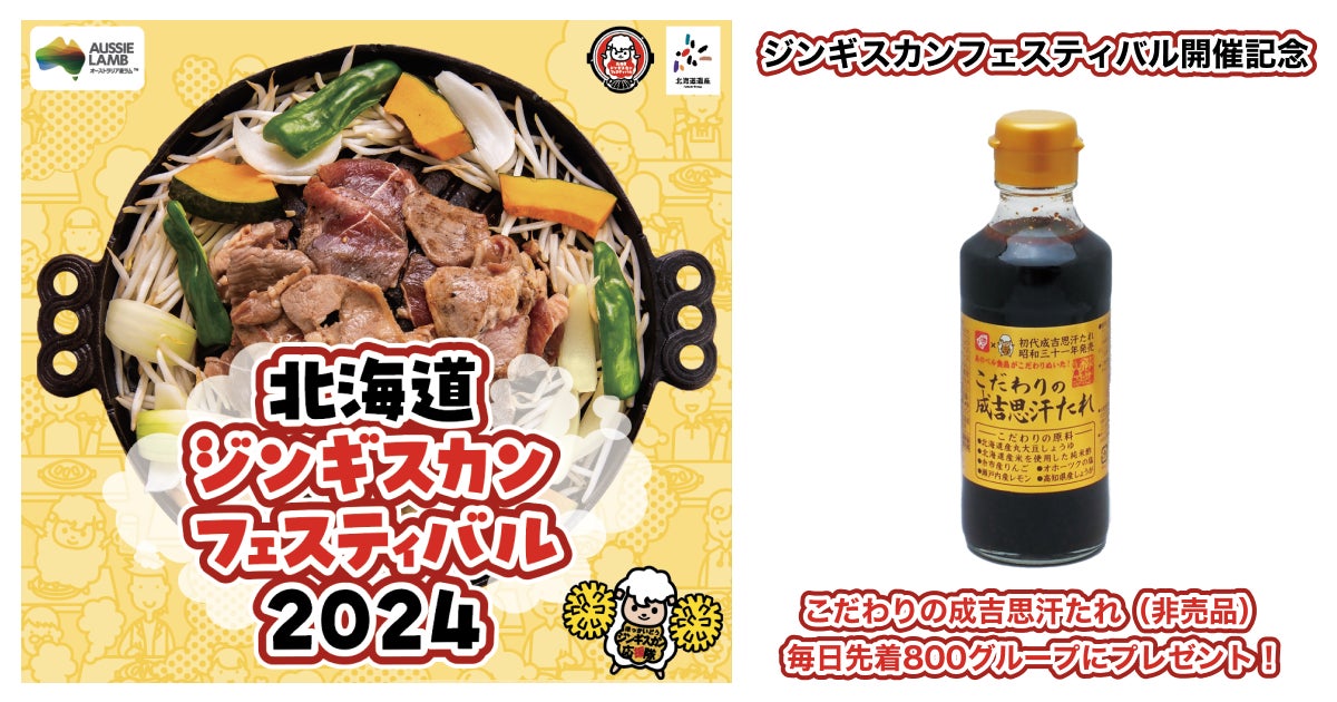 「成吉思汗たれ」「ラーメンスープ華味」「スープカレーの作り方」「ザンギ名人」など、北海道のソウルフードをご家庭で味わうためのたれ、つゆなどを製造販売する「北海道のソウルフードメイカー」ベル食品株式会社(本社:北海道札幌市西区、代表取締役社長:福山浩司、以下ベル食品)は、北海道遺産ジンギスカン応援隊(事務局:株式会社アートピア 内、所在地:北海道札幌市中央区、代表取締役社長:本田美穂子)が主催し、5月17日(金)〜19日(日)の3日間開催される「北海道ジンギスカンフェスティバル2024」)にて、非売品の「こだわりの成吉思汗たれ」を毎日先着800グループ限定で配布します。