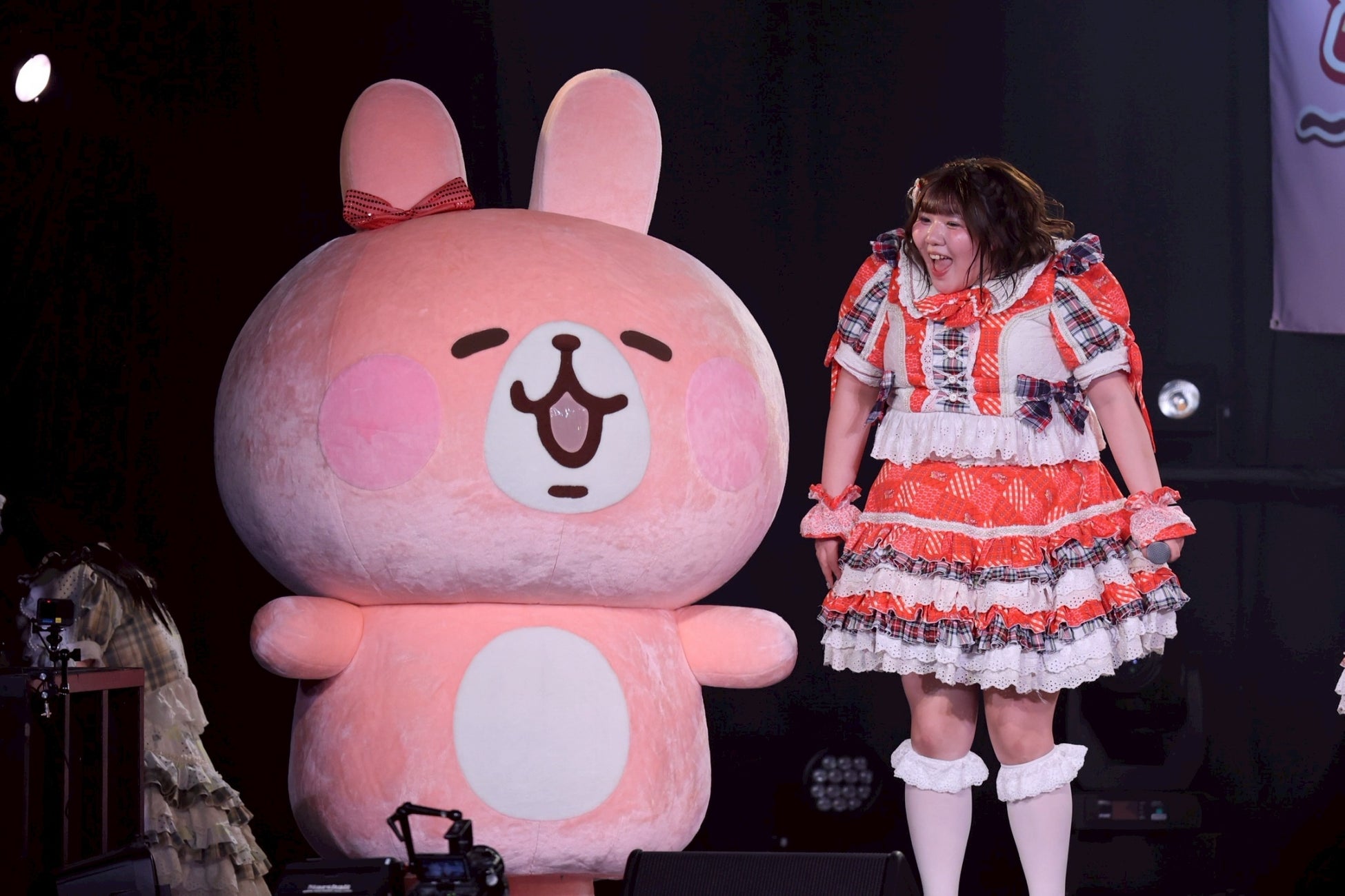 「ピスケ&うさぎがお祝いに駆けつけてくれたよ~」と大橋が「すけーる」のMVでも共演した人気キャラクターのピスケ&うさぎとともにステージに復帰。ということでピスケ&うさぎも交えて「すけーる」をパフォーマンス……なのだが、途中うさぎにトラブルが発生!? 一時ステージ袖に捌けたものの曲のエンディングまでには無事に復活。いっしょに盛りあげた。