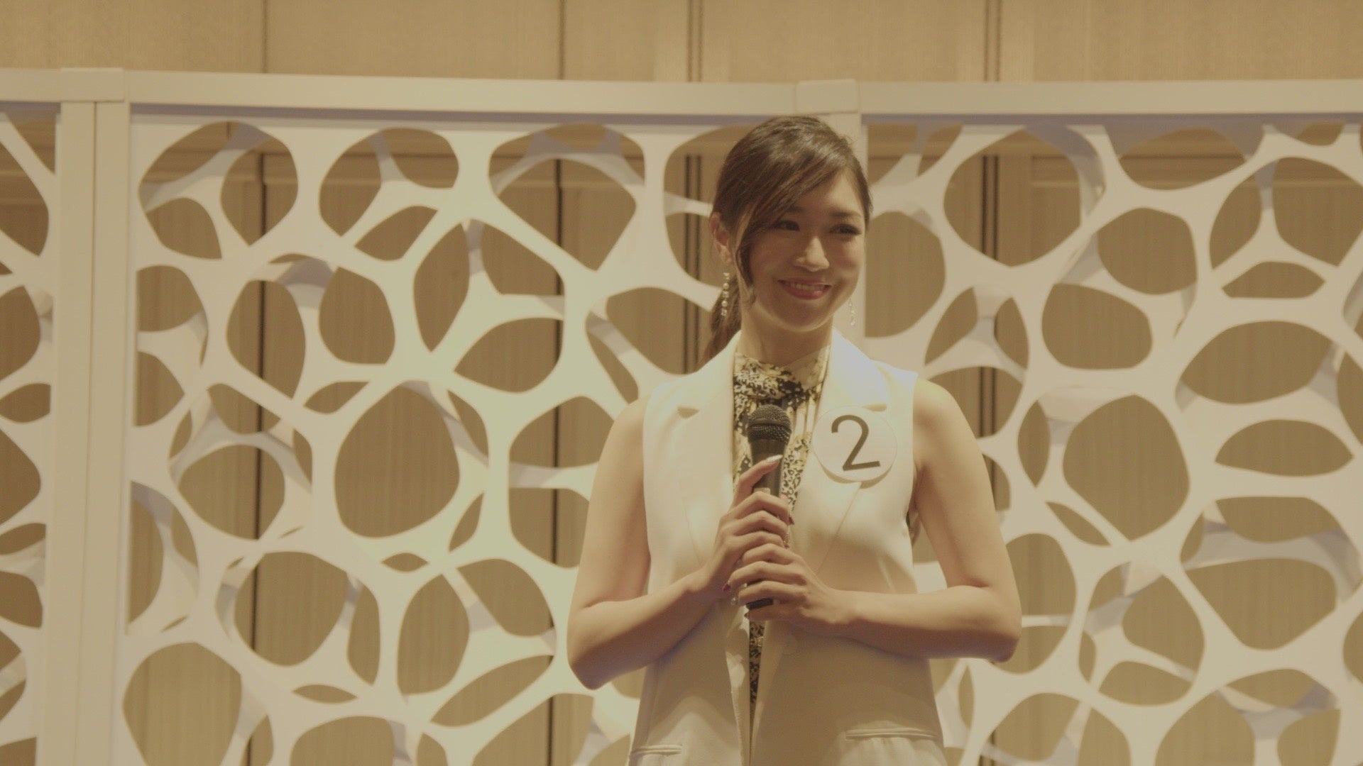 ラジオやテレビCM等で活動している横山さんは「もっと広い世界で活躍したい!」という思いでミスオリエンタルに挑戦。リポーターの経験を反映させた自己PRは際立っていました。