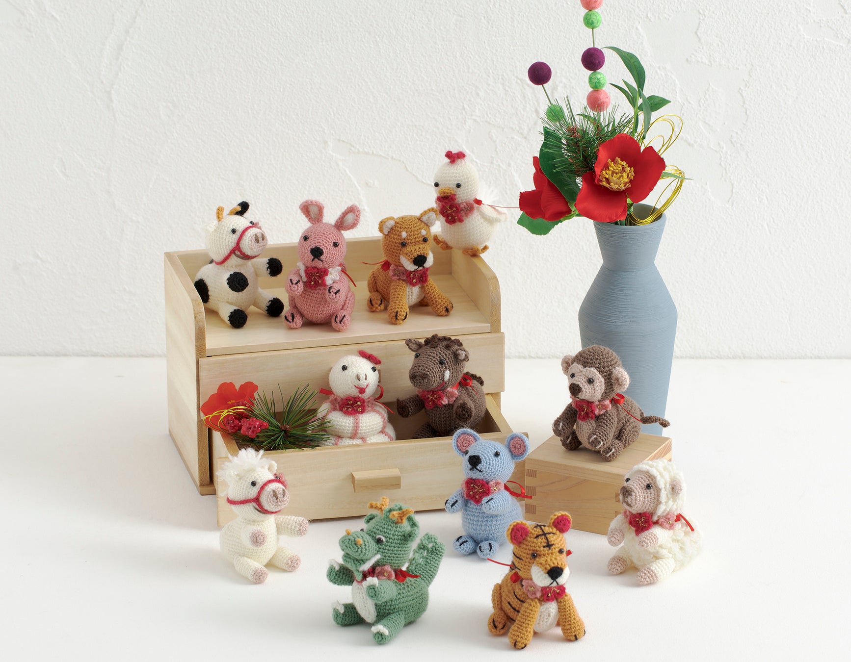 手のひらサイズの可愛い十二支の編みぐるみや、凛々しい辰のお飾りなど、手編みキットを2種類発売。干支飾りは家を守る縁起物として、一年中飾って楽しめます。