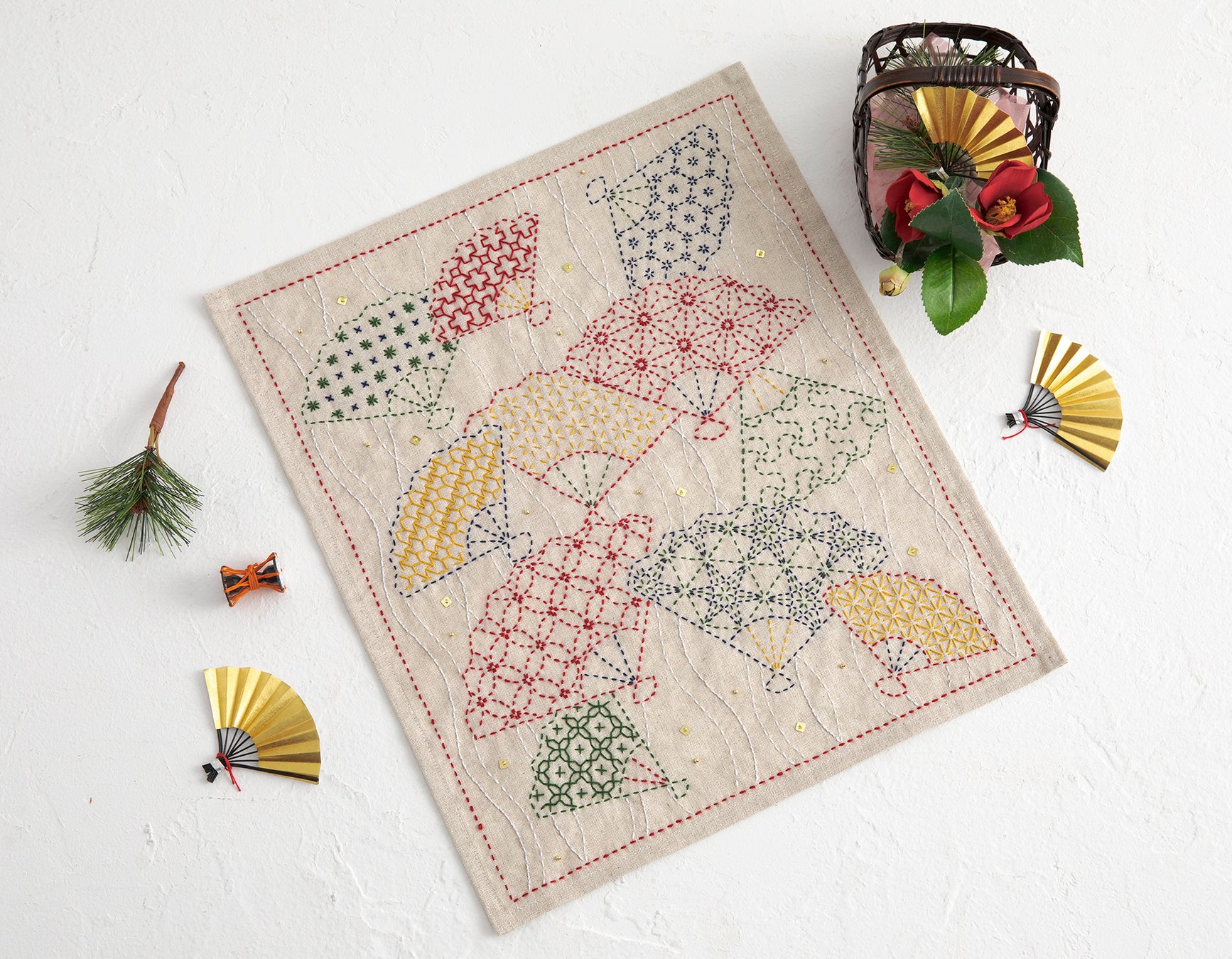 刺し子は幅広い年齢層に好まれ、近年はSNSでの投稿も多い人気手芸のひとつ。年間を通して飾れるデザインの刺し子のクロスと、縁起が良いお正月モチーフや吉祥柄の連続模様が楽しい刺し子ふきんを発売します。