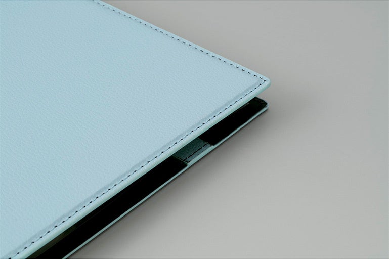 ビジネスの場でもスッキリとした印象を与える、シンプルなレザー調の表紙を採用。大事な商談の場でも使用できる高級感のあるつくりです。仕事用の鞄にもスッキリと収まるスリムなサイズ感なので、持ち運びに適しています。
