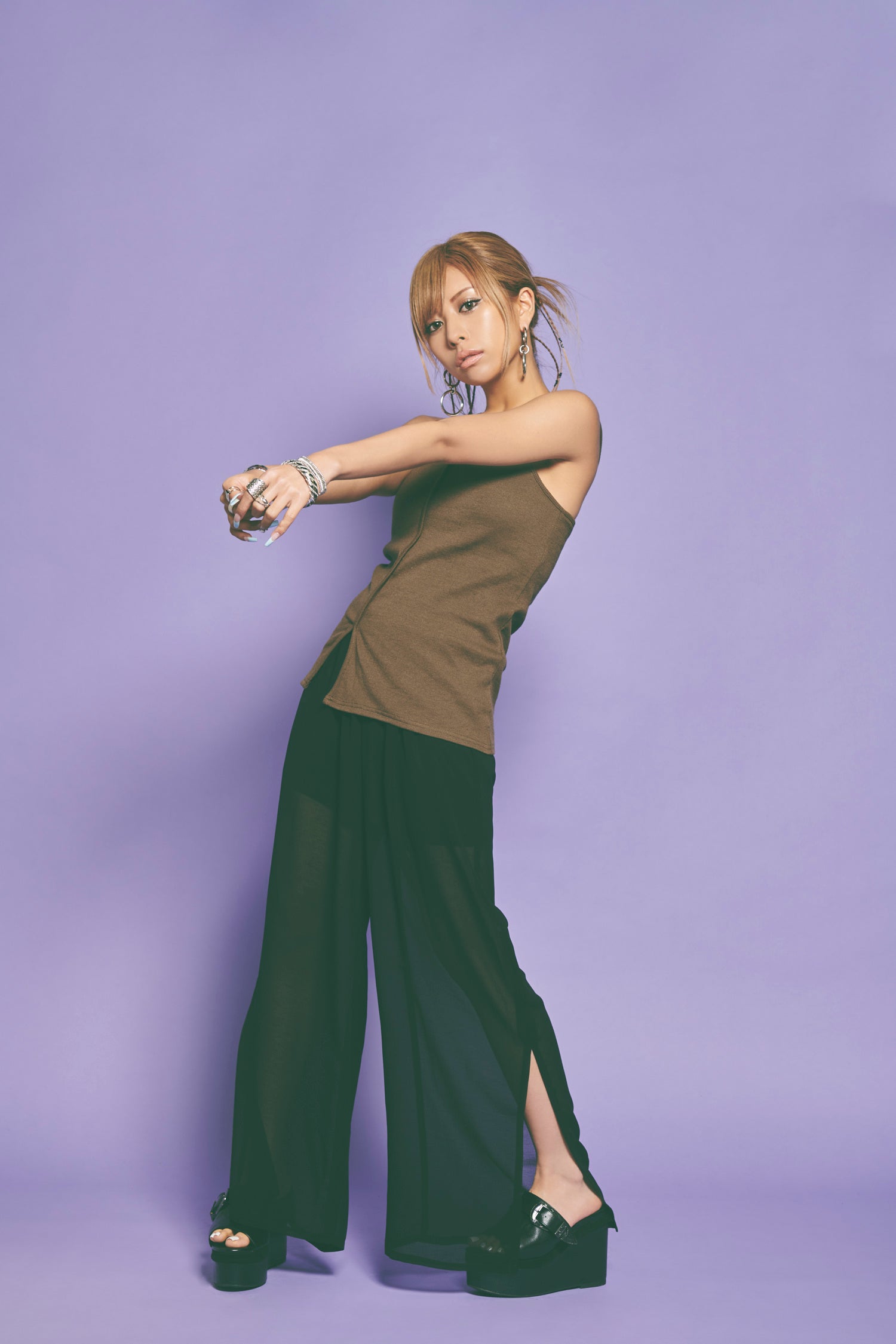 艶感のあるアイテムやボディラインの出るシルエットに力強さのある