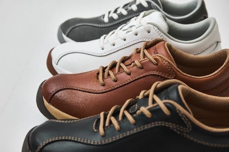 今回販売する新商品は、当時のモデルを忠実に再現。レザーの質感や履き心地、デザイン、製法まで、当時と変わらない仕様に近づけた復刻モデルです。オン・オフ兼用可能な洗練されたアッパーと、ウォーキングシューズのような快適な履き心地は、20年近く経った今の時代でもフィットするタイムレスなデザイン。当時のベストセラーモデルであったバーニッシュ加工(焦がしを入れたようなデザイン)を施したオリジナルのカラー展開に加え、現代のストリートファッションにマッチするようにアレンジした、ホワイトレザーとグレースエードモデルも発売いたします。初代モデルを懐かしむ方はもちろん、当時のモデルを知らない若い世代の方にも魅力を感じていただける商品ラインナップとなっています。