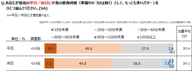 ■平日は飲食時間が短いが、休日は飲食時間が1時間以上の家庭もある