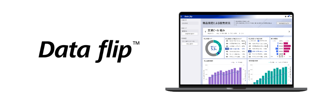 2022年10月にサービスを開始した「Data flip™」は、東芝グループの電子レシートサービス「スマートレシート®」から得られる購買データを統計化し、実店舗における消費行動パターンを閲覧・分析できるサブスク型の購買統計データ分析ツールです。