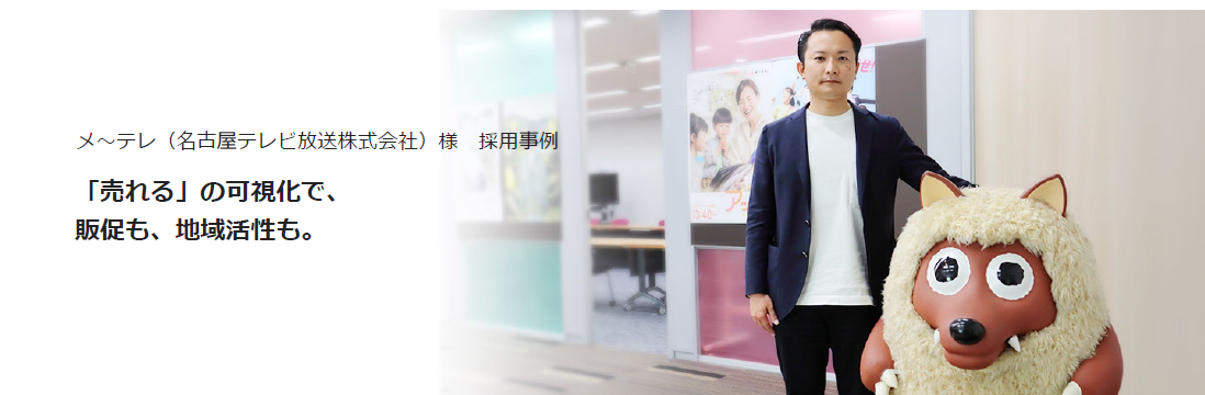 様々な業界・業種のお客様に活用いただいている本サービスですが、「広告効果の可視化」へ向けいち早く導入いただいたのが、メ~テレ様です。これまでのテレビCMにおける広告効果測定の曖昧な指標を、実店舗における購買統計データから紐解くことで、次の広告企画を行うときの検討材料にしたり、お客様が商品のターゲットを明確化するのに活用頂けるとご評価いただき、導入に至りました。
