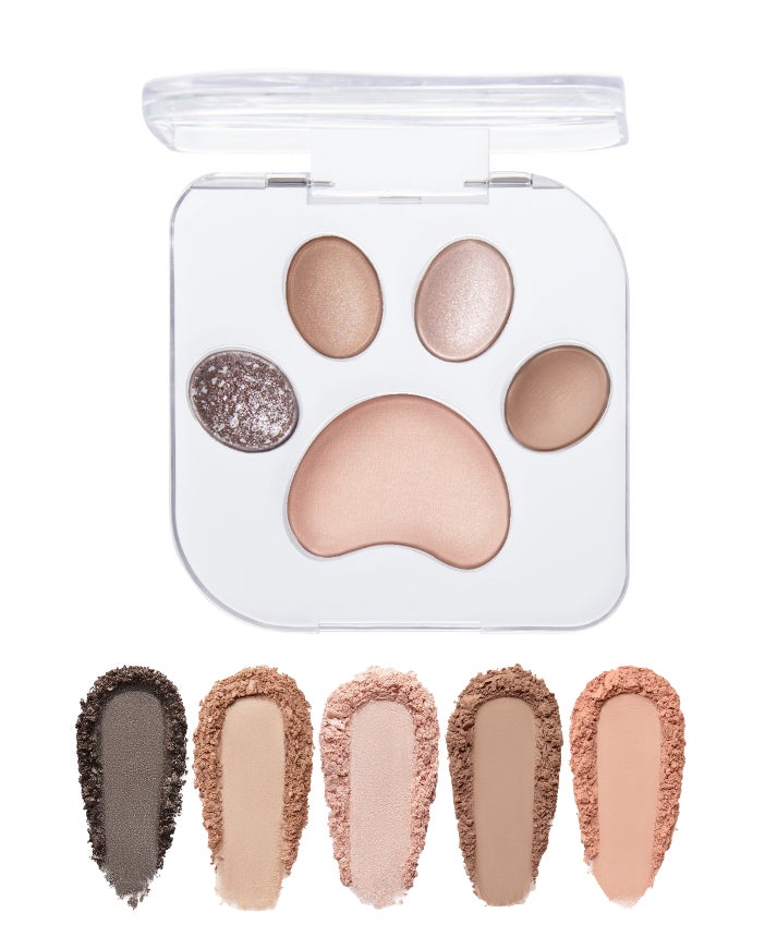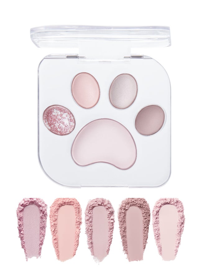 肉球モチーフのパッケージ:ベースカラー、締め色、ラメなどから構成された5色パレットは、見た目の可愛さだけでなく機能性も抜群です。1つでその日の気分に応じた様々なルックのメイクが完成できます。毎日違うアイメイクを楽しみたい、気まぐれ猫ちゃんのようなあなたにおすすめです。