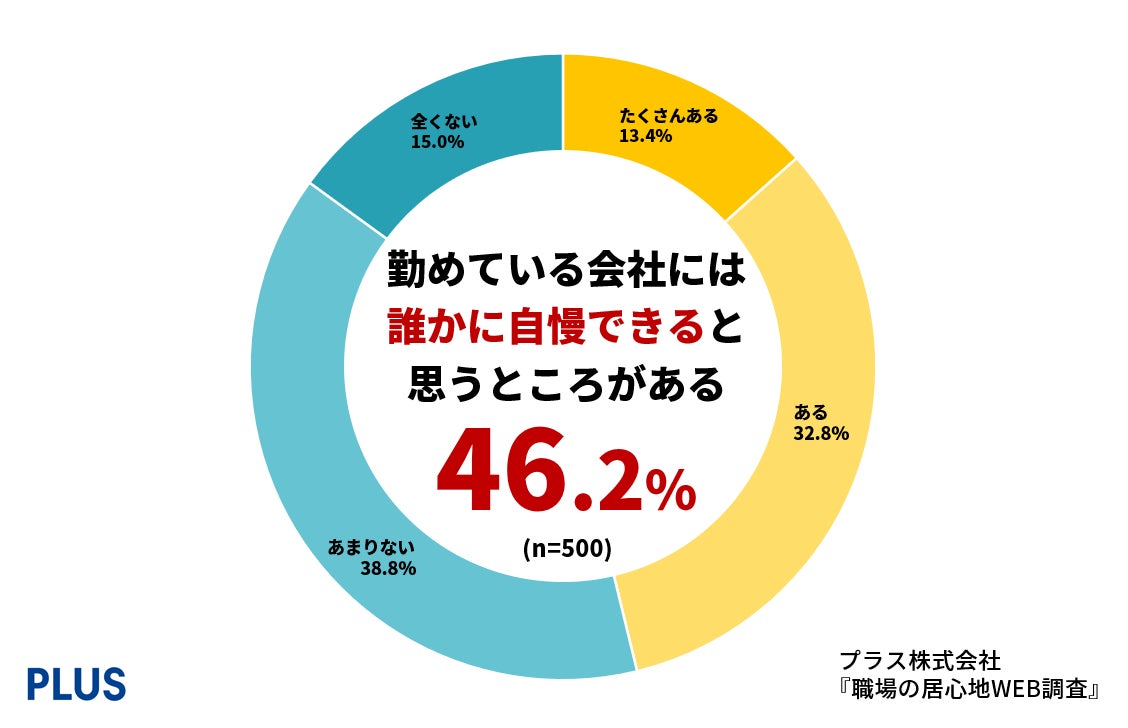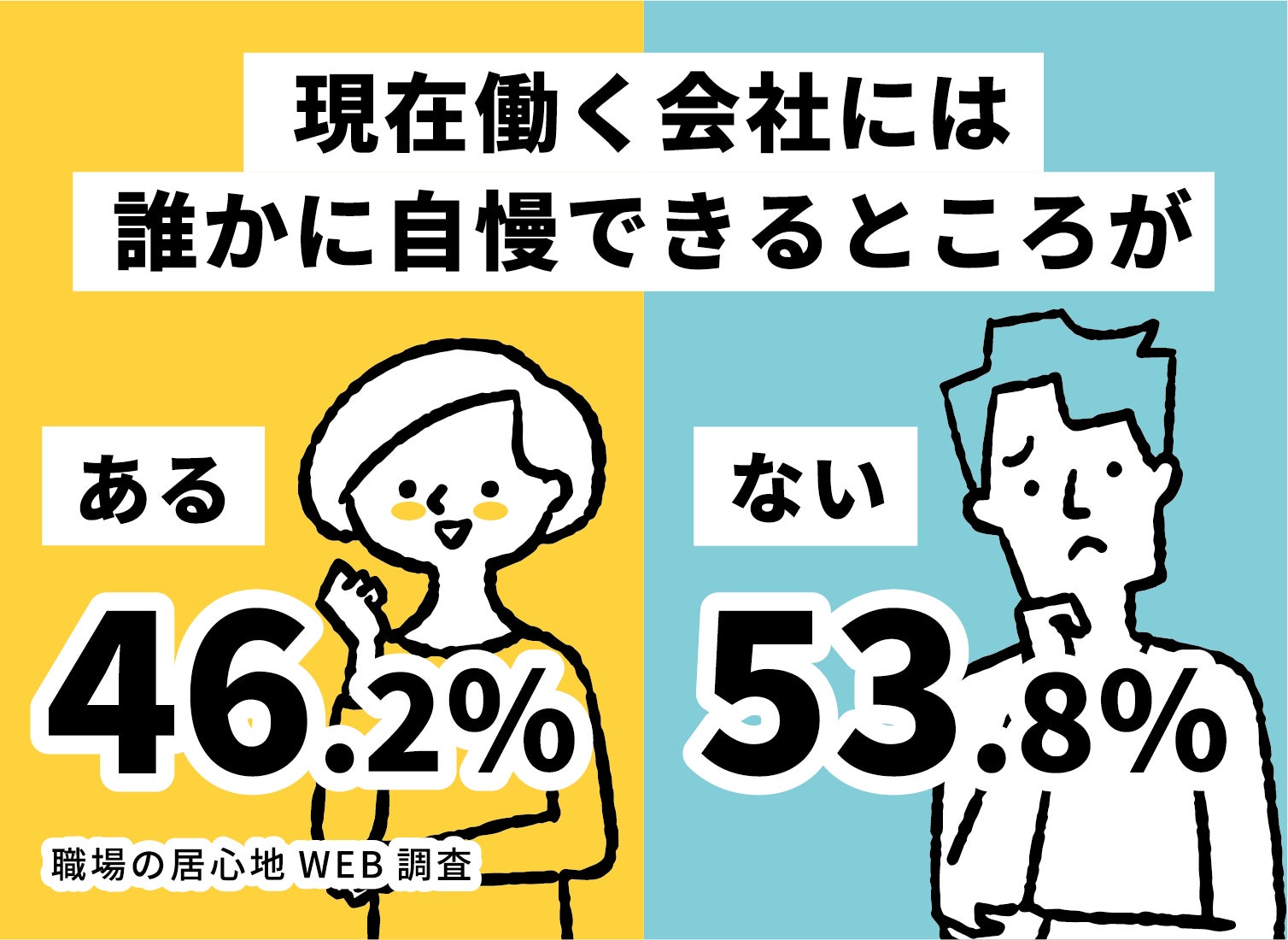 【職場の居心地WEB調査】会社に「自慢できるところがある」と答えた人は46%。あなたの職場では?