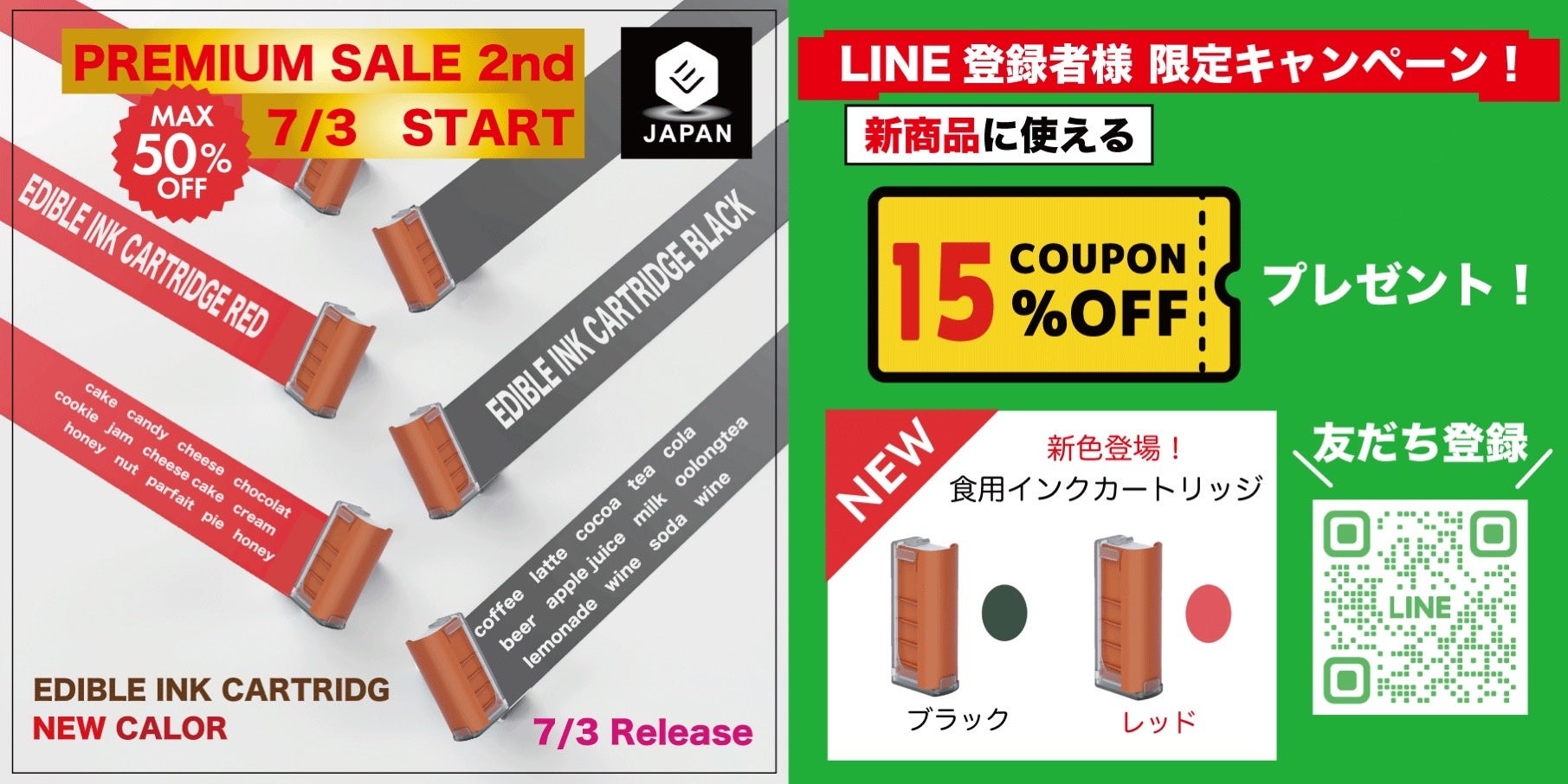 公式LINE登録で、食用インクが15%オフになるキャンペーンも開催