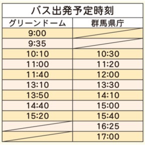 また、グリーンドーム駐車場⇔県庁の間のみ、シャトルバスを両日とも運行いたします。こちらの乗車は有料となります。(乗車料金:片道100円 ※小学生以下及び障がい者手帳ご持参の方は無料です)。シャトルバスをご利用いただいた方にはお一人様1回乗車につき1枚ぐんまちゃん限定ステッカーをプレゼントいたします。