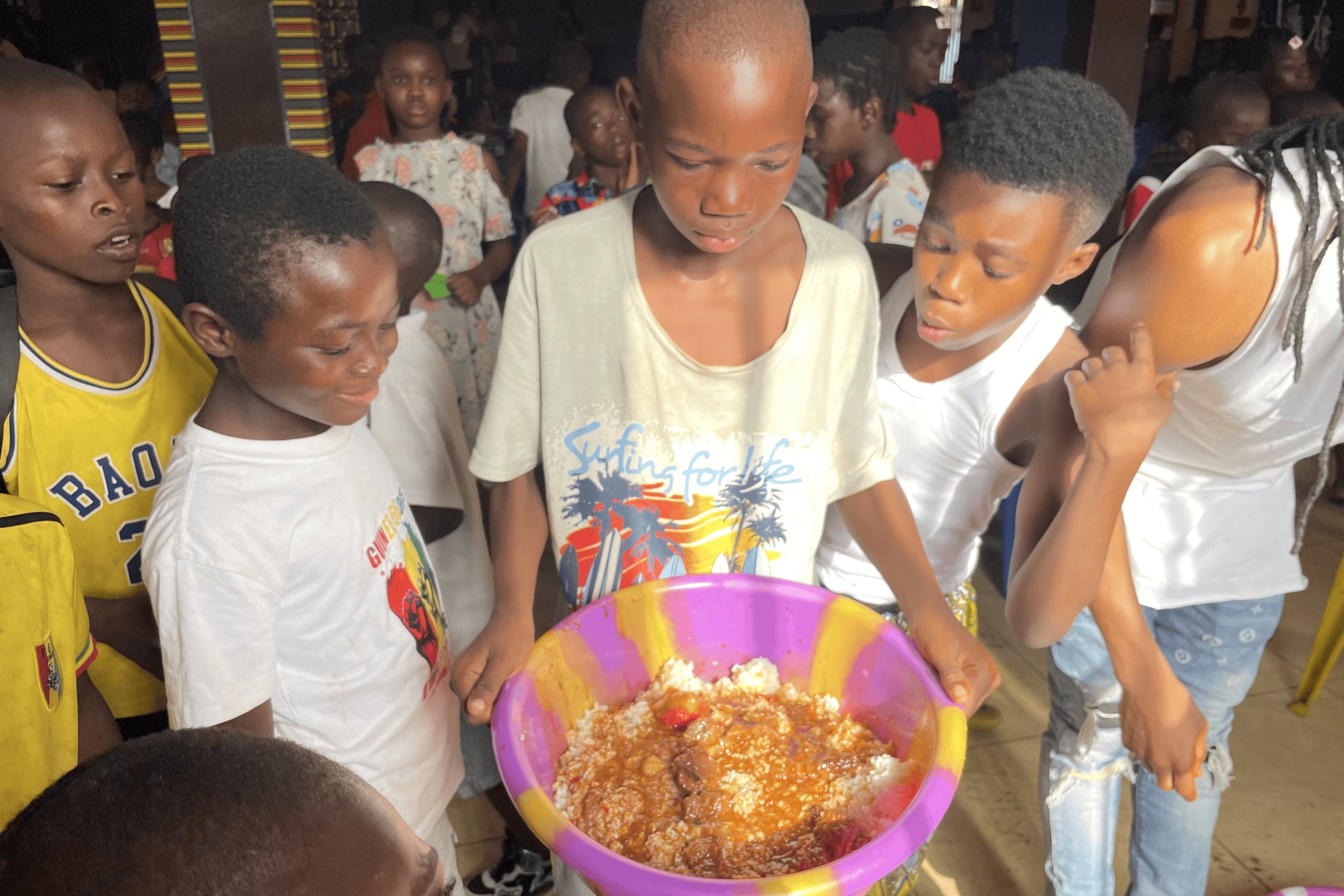本ツアーは、ギニアの伝統音楽・ダンスの本場レッスン、海沿いの暮らしやローカルマーケットにふれる観光プログラムに加えて、現地NGOが運営する子ども食堂でのボランティア活動に参加できる、他にない内容です。活動後には「ボランティア参加証明書(活動証明書)」も発行します。