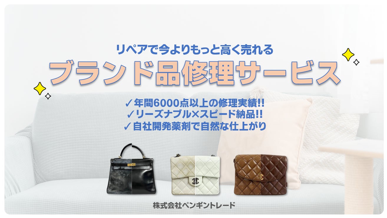 2024年10月16日、株式会社ペンギントレード(本社:東京都渋谷区宇田川町3-5 Spark SHIBUYA 6階、代表取締役:佐藤佑一)は、ブランド品のバッグやアクセサリー、アパレルに特化した「修理サービス」を新たにリリースいたします。本サービスは、ブランド品の買取販売を行う事業者向けに、独自開発の薬品を使用して商品価値を最大限に引き出す修理をコンセプトにしております。サービスは3500円~(税抜)から利用可能で、最短7日のスピード納期にも対応しています。詳細やお申込みについては、公式LINEでお問い合わせください。