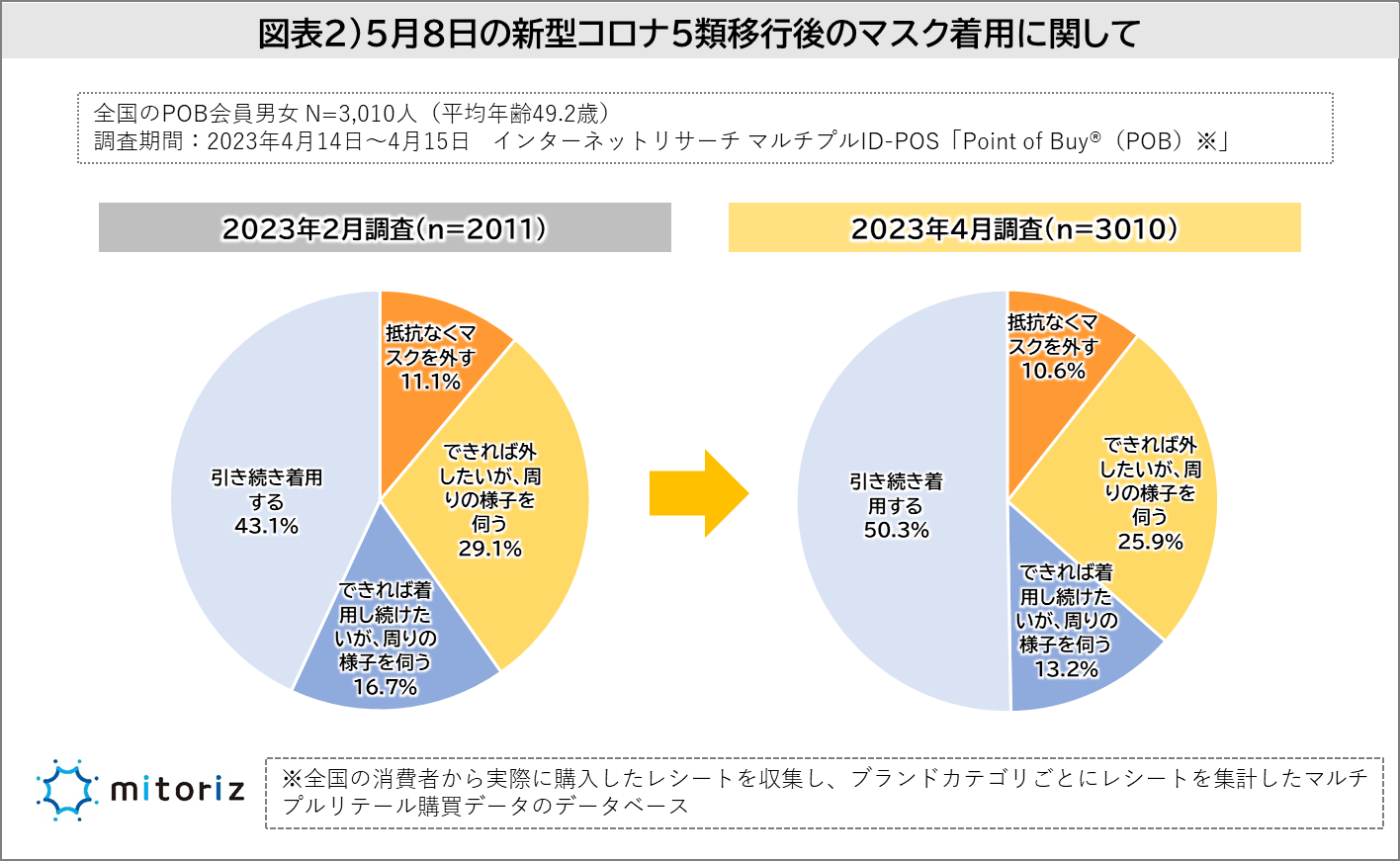 5類移行後に「引き続き着用する」が2月時点から7.2P増加!周りの様子を伺う派が着用する派に移行か