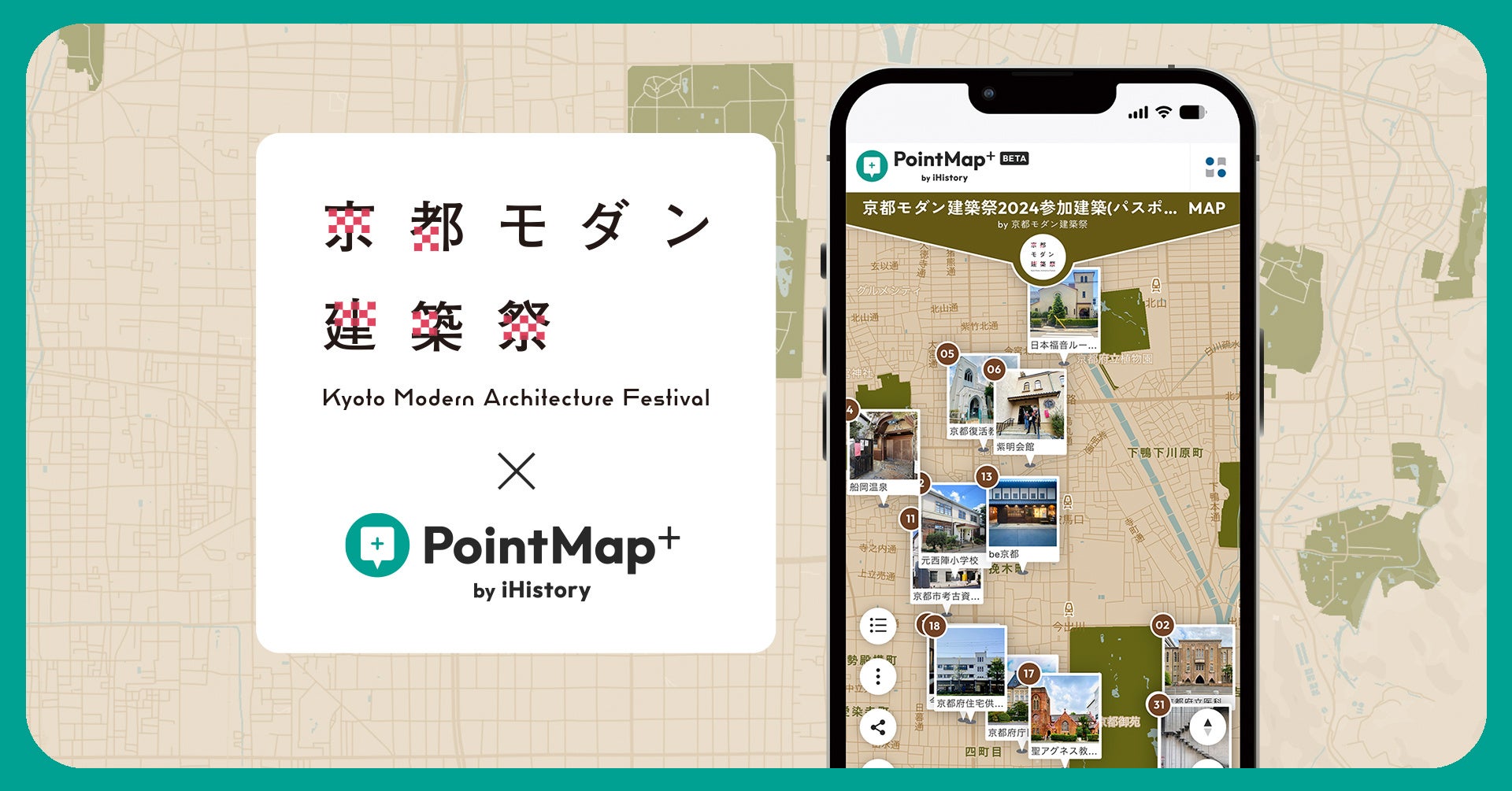 【事業連携】現存するモダン建築を一斉公開する、文化庁京都移転記念事業「京都モダン建築祭」で、建築物一覧の公式デジタルMAP作成を、iHistory Inc.が展開する『PointMap+』で担当。