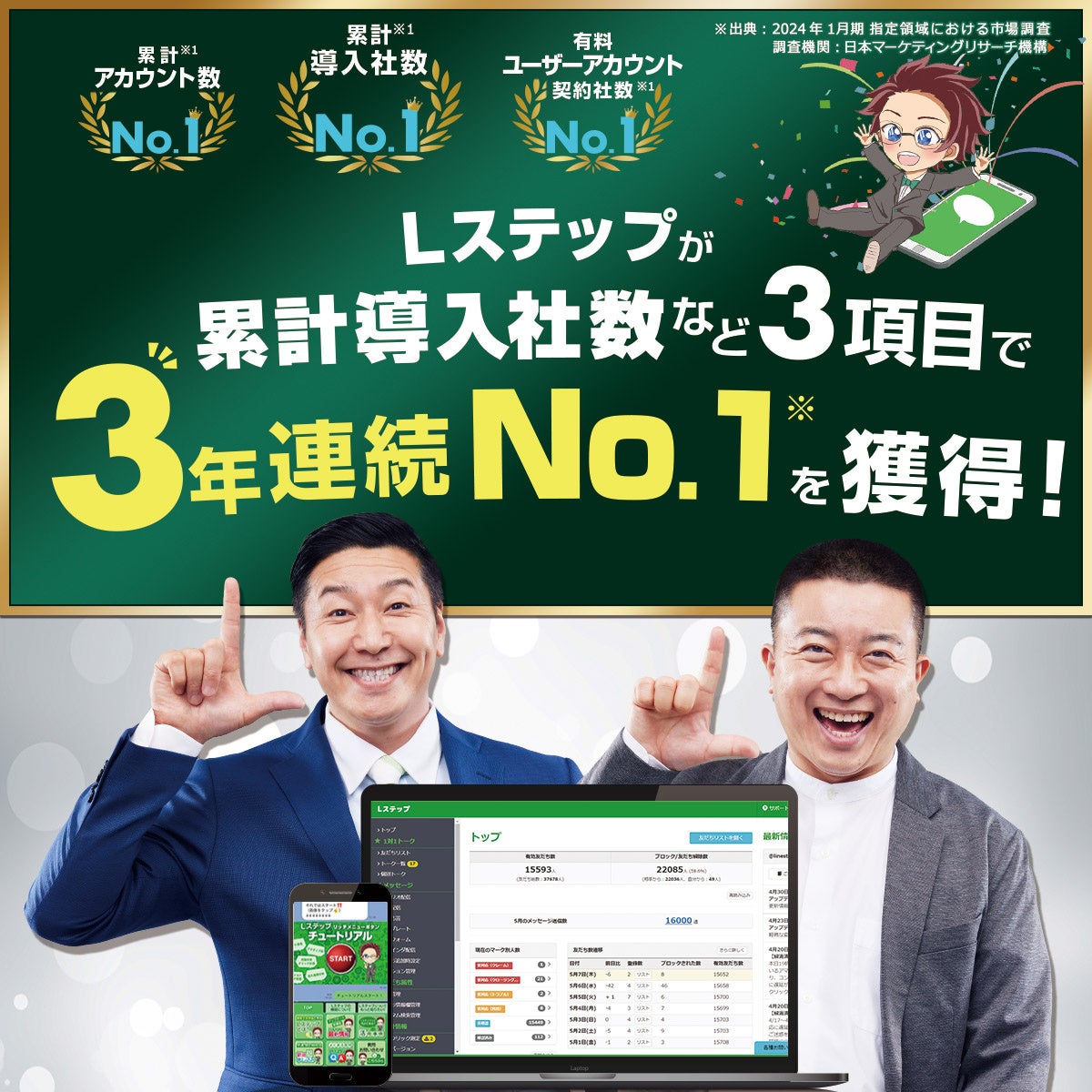 「Lステップ」が「累計導入社数」など3項目で3年連続No.1を獲得 LINE公式アカウントを用いた マーケティングツールの実績調査より
