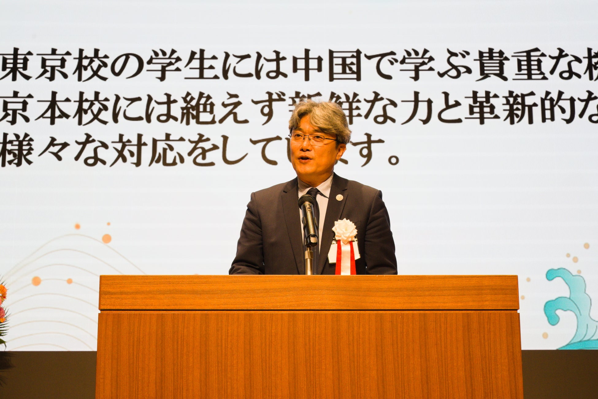 式典では、北京語言大学副校長 張宝鈞氏、株式会社WEWORLD 代表取締役 荻野正昭氏による挨拶のほか、中国駐日本大使館杜柯偉公使参事官、一般社団法人日本青少年育成協会/HSK日本実施委員会 本田恵三事務局長、北京語言大学東京校初代校長 趙菁氏から心温まる祝辞を頂戴しました。