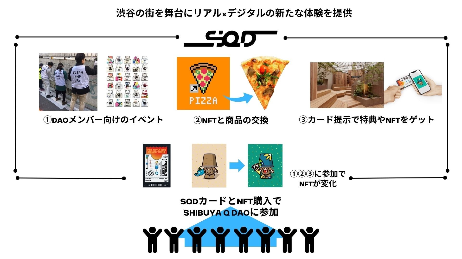 Shibuya Q DAO(SQD)は、Entertainment for life in SHIBUYAをコンセプトに渋谷の街を舞台に現実世界とweb3の接点をNFTを使ってみんなで楽しみながら創っていく参加型・共創型のプロジェクトです