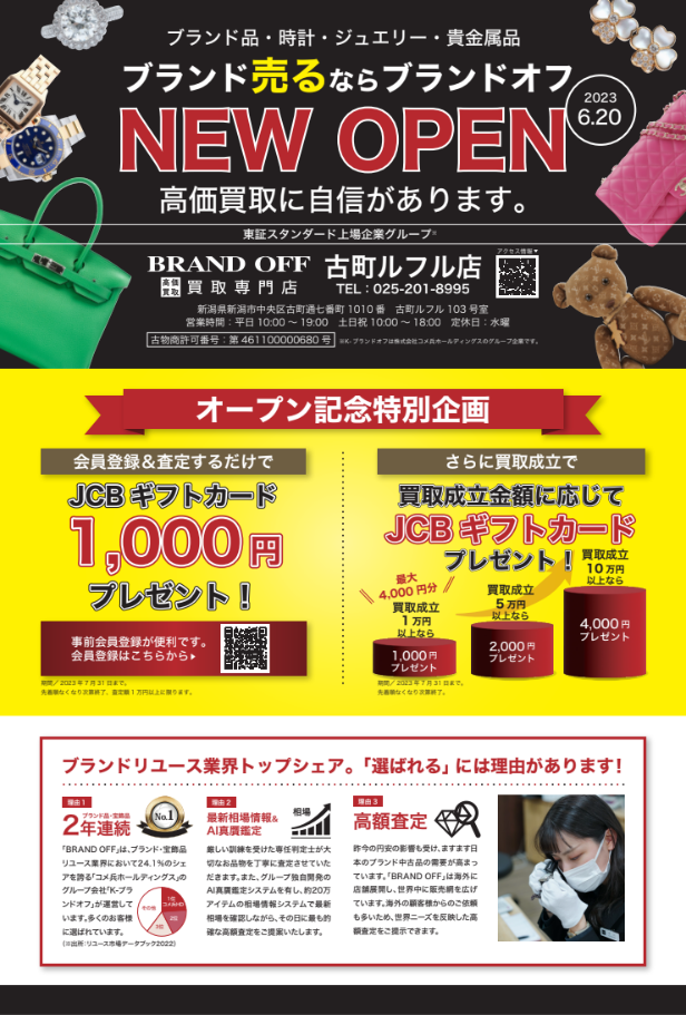 「BRAND OFF 買取専門 古町ルフル店」が新潟県新潟市に6月20日(火)オープン