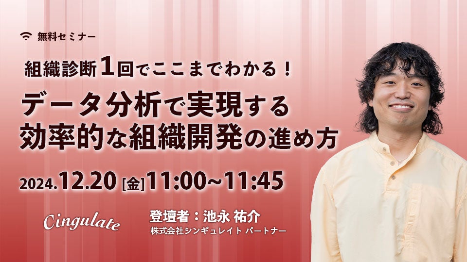 シンギュレイト、「組織診断サーベイ1回でここまでわかる!データ分析で実現する効率的な組織開発の進め方」を12月20日(金)11時より開催