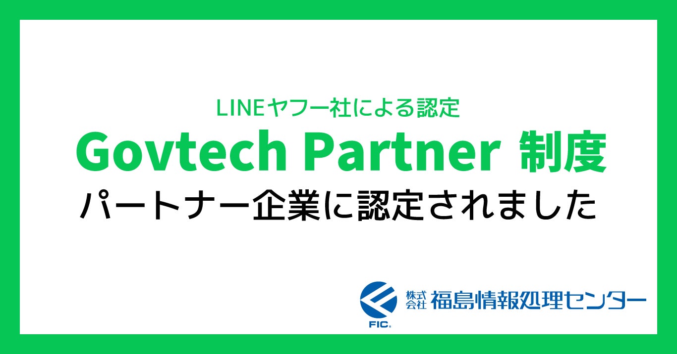 株式会社福島情報処理センター(本社:福島県郡山市、代表取締役社長:小暮 憲一、以下「福島情報処理センター」)は、LINEヤフー株式会社(本社:東京都千代田区、代表取締役社長:出澤 剛、以下LINEヤフー社)が国や自治体におけるLINE公式アカウント活用の技術支援に長けたパートナー企業を認定する「Govtech Partner制度」において、パートナー企業に継続認定されましたので、お知らせいたします。