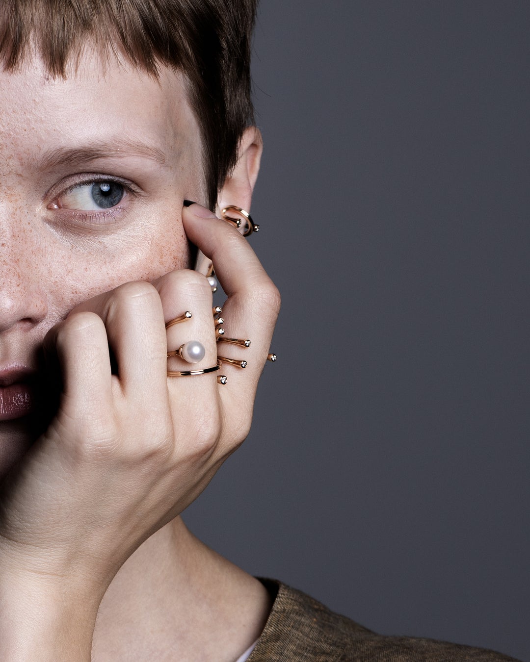 食虫植物ドロセラの優雅な動きにインスピレーションを得たコレクション。新作はパールを触手に輝く甘い蜜に見立て、オーガニックなアプローチで構築しました。独創的でモダンなパールで、デイリースタイルをよりリュクスに。