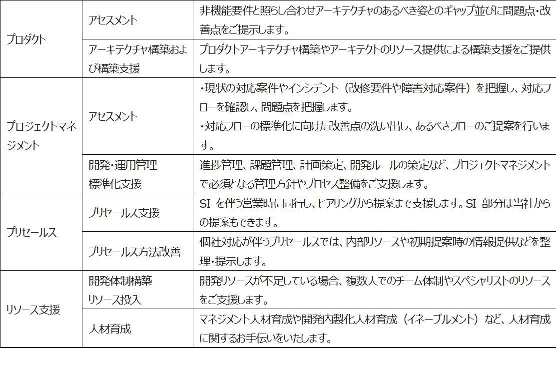 - アーキテクチャやフレームワークの使い方を見直し、開発やカスタマイズなどにおいて生産性や品質を高める