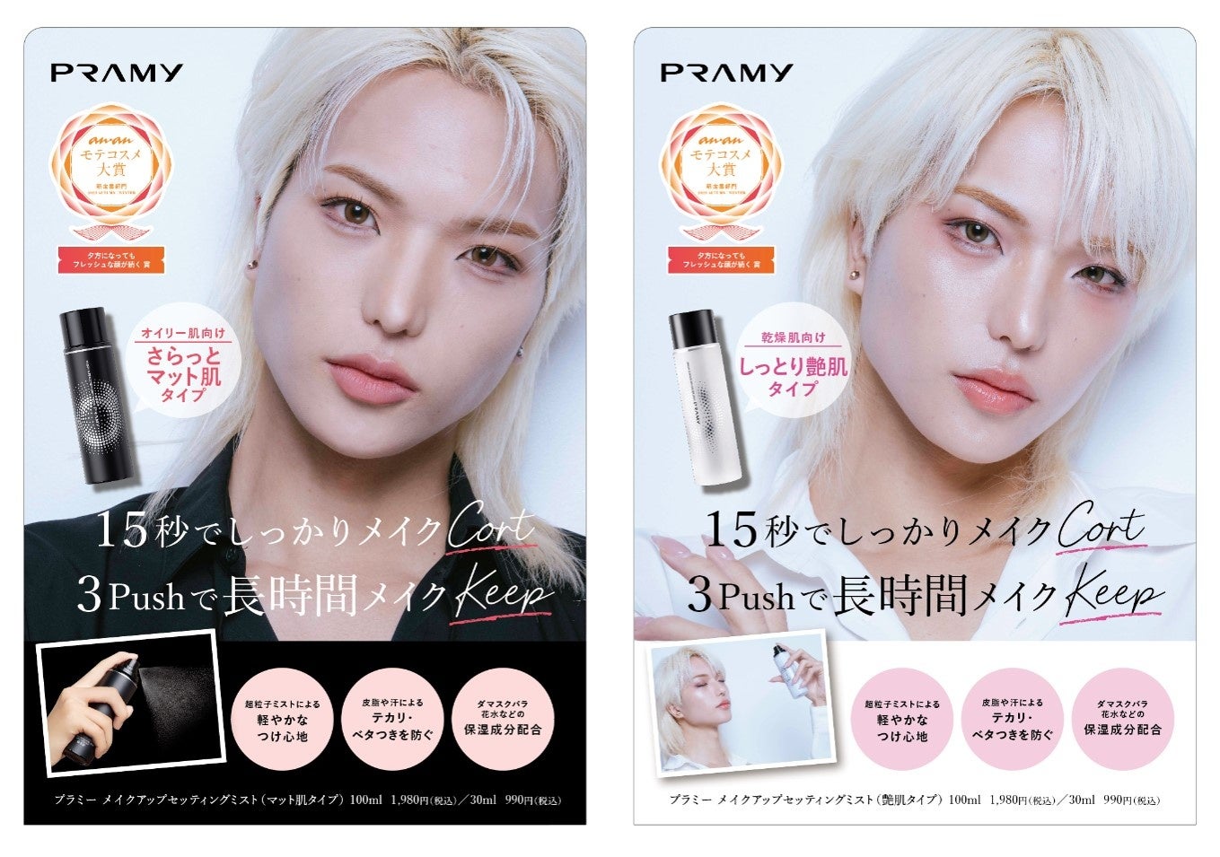 株式会社ブリリアントプラス(本社:東京都台東区)が2023年7月より国内展開していた『PRAMY メイクアップセッティングミスト』のビジュアルイメージを一新し、好評のマットタイプを含めさらにモイストタイプもシリーズに追加。