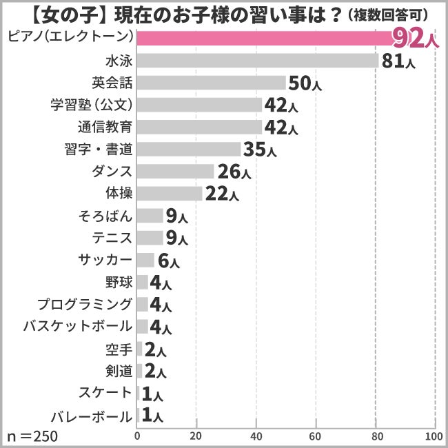 ●【女の子】人気の習い事第1位は「ピアノ(エレクトーン)」