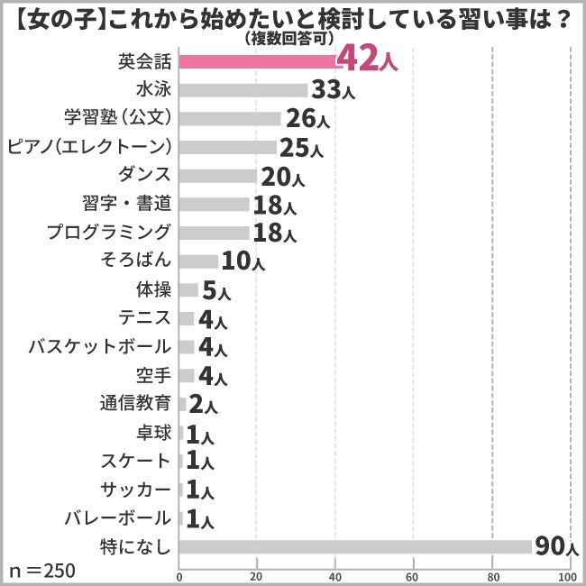 次に、これから新しく始めようか検討している習い事を聞いてみました。
